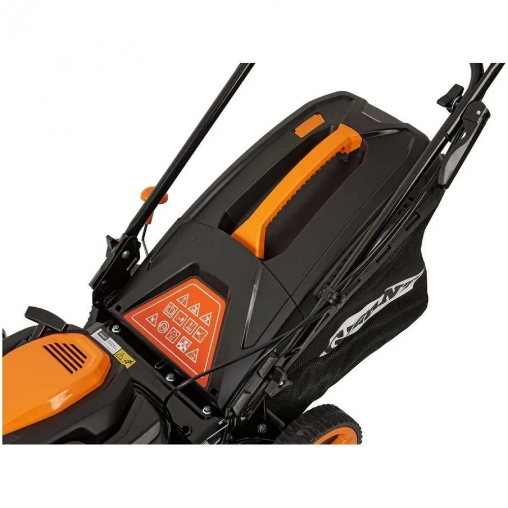 Регулировка высоты среза осуществляется при помощи центрального рычага в 7 положениях в пределах 30-75 мм.