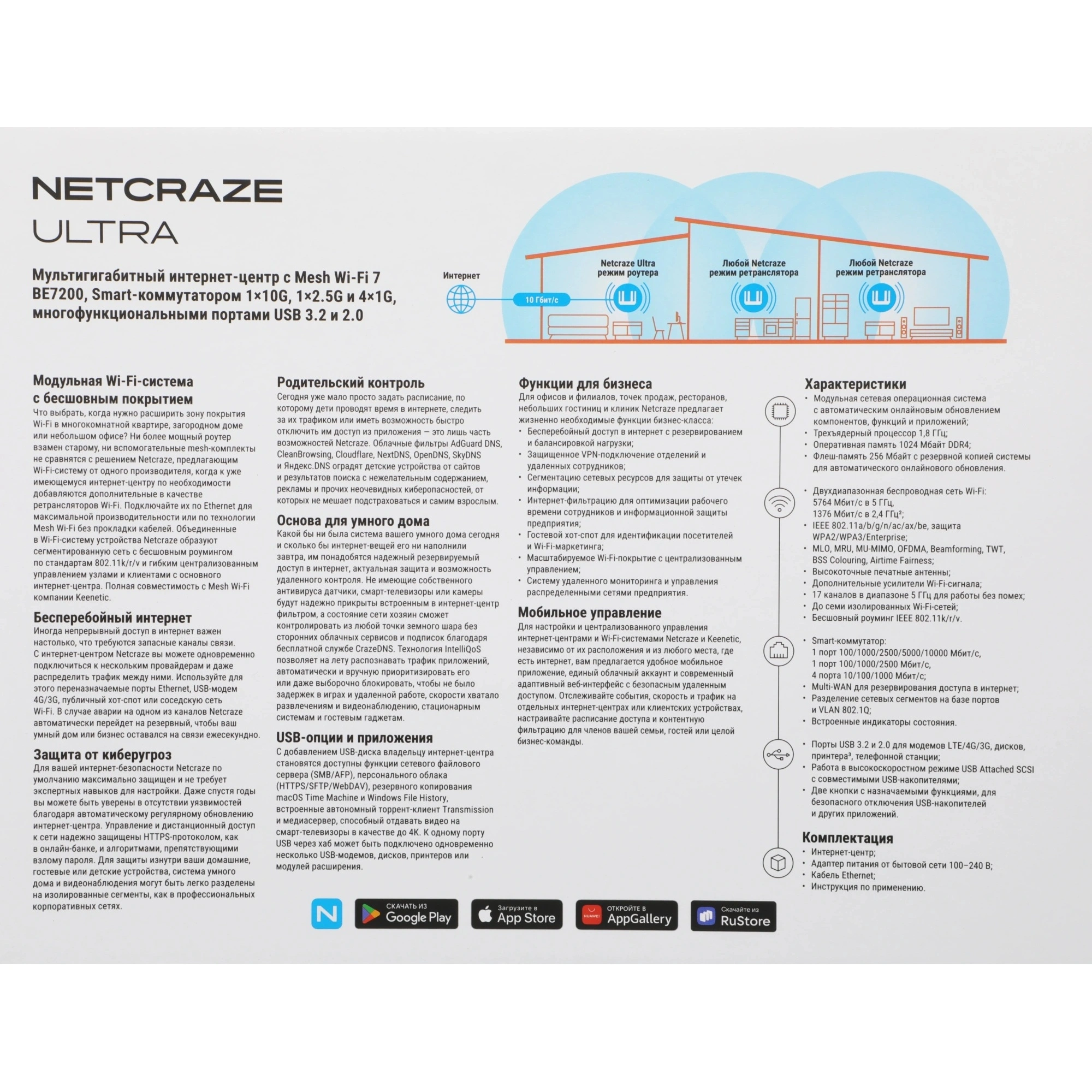 Мультигигабитный интернет-центр с Mesh Wi-Fi 7 BE7200, Smart-коммутатором 1?10G, 1?2.5G и 4?1G, многофункциональными портами USB 3.2 и 2.0.
