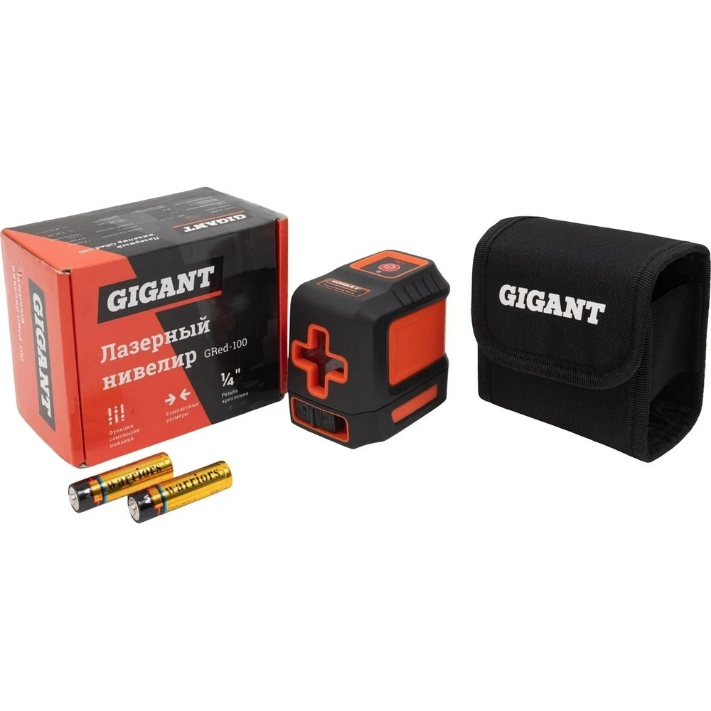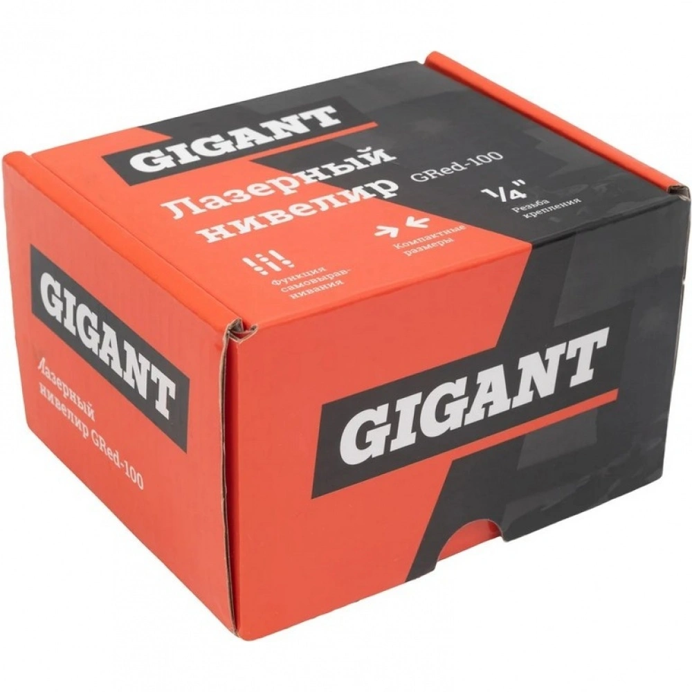 Gigant также оснащен резьбой 1/4 дюйма для крепления на штатив, что позволяет удобно фиксировать инструмент в необходимом положении. Красный цвет луча обеспечивает отличную видимость даже при ярком освещении.