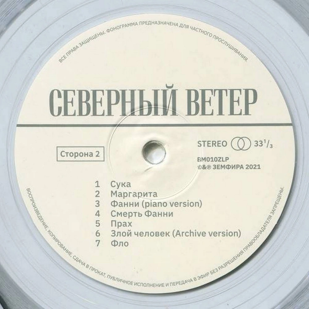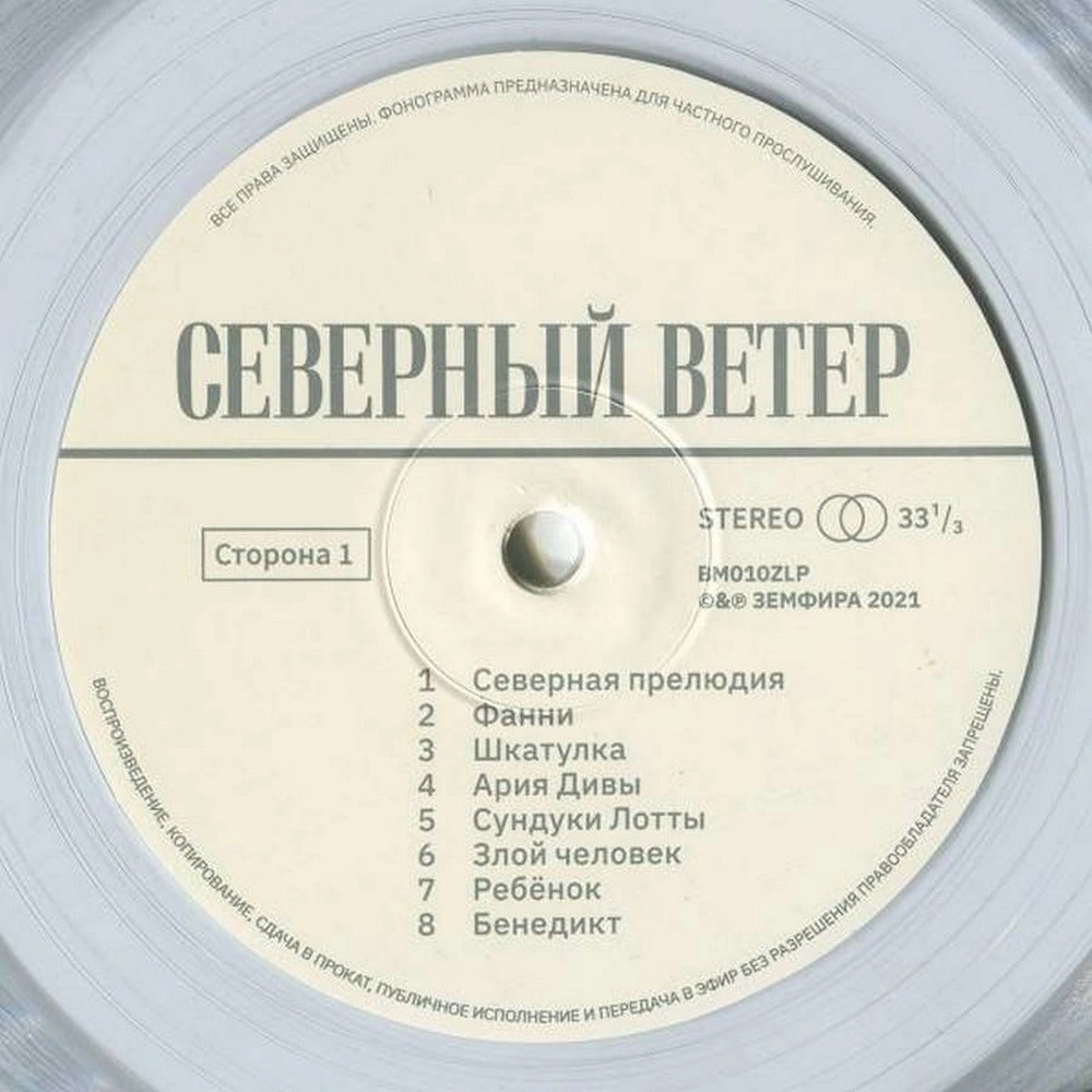 Земфира - Северный Ветер (Clear Vinyl) (LP) (BM010ZLP) виниловая пластинка - по цене 4165 руб. в интернет-магазине КотоФото. Подробная информация находится на карточке товара - описание, характеристики, фото. Забрать заказ можно из пунктов самовывоза или оформить доставку на дом. Если останутся вопросы, звоните - 8(812)426-98-99 в Санкт-Петербурге.