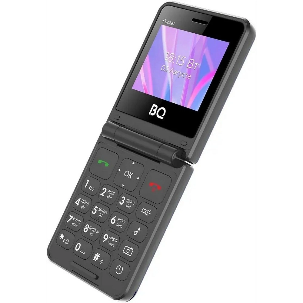 Модель BQ 2456 Pocket выполнена в формате раскладушки, при котором кнопки защищены от случайного нажатия. На случай экстренной ситуации предусмотрена кнопка SOS. Сотовый телефон имеет слот для карты памяти microSD и microSDHC. На них можно хранить данные предельным объемом 32 Гб. Для съемки фото и записи видеороликов предусмотрена камера. Съемный аккумулятор емкостью 1000 мА*ч заряжается через кабель с разъемом USB Type-C. На корпусе также есть отдельный вход для подключения наушников.