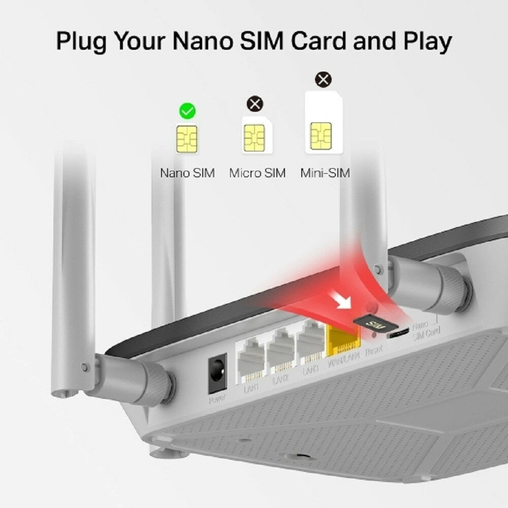 Двухдиапазонный роутер с поддержкой 4G LTE, предназначенный для создания беспроводной сети Wi-Fi. Устройство позволяет подключать до 64 устройств одновременно и работает в двух частотных диапазонах: 2.4 ГГц (до 300 Мбит/с) и 5 ГГц (до 867 Мбит/с).