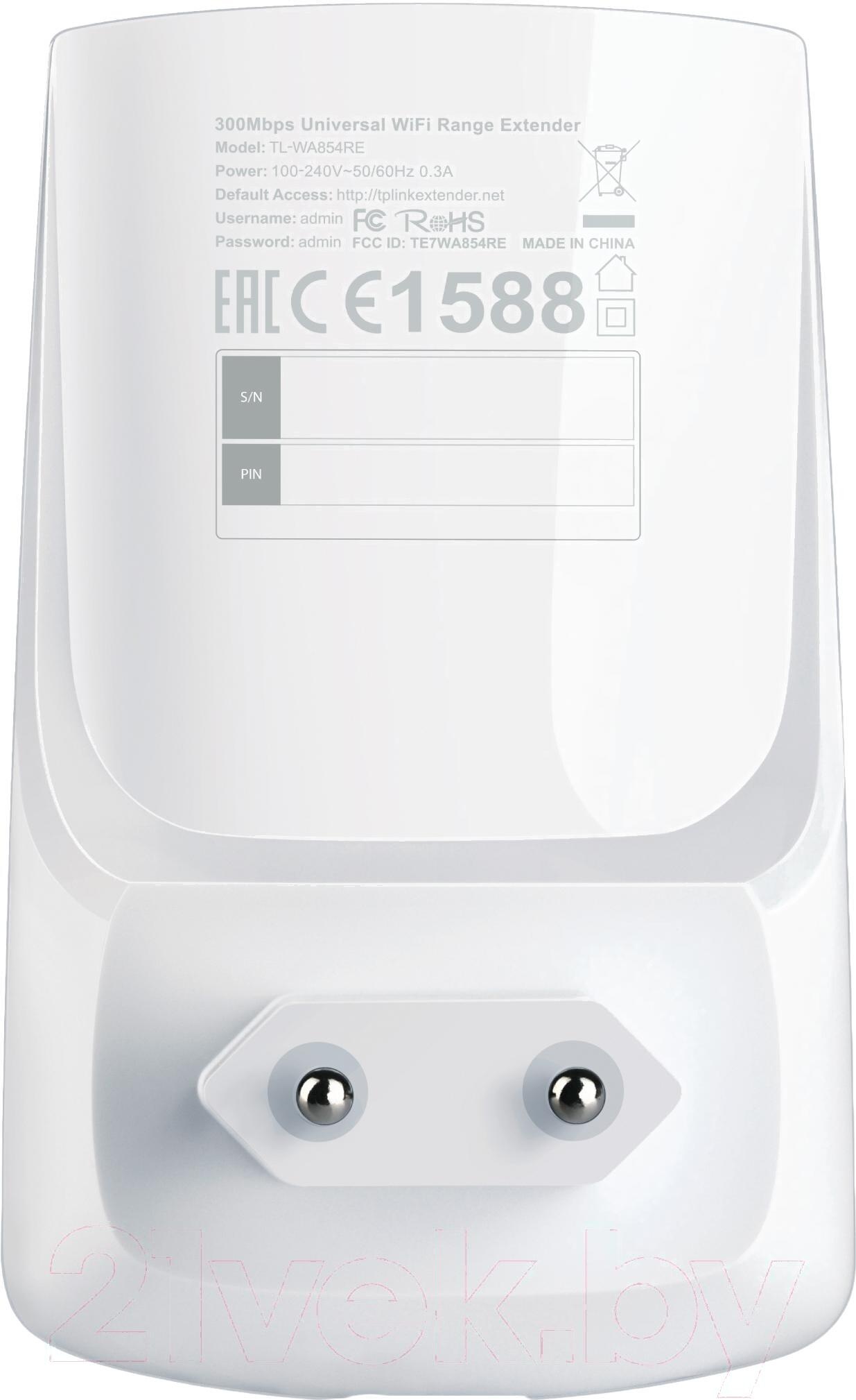 Усилитель беспроводного сигнала TP-Link TL-WA854RE; Размещение: в помещении; Стандарты беспроводной связи: 802.11b, 802.11g, 802.11n; Общая скорость связи: 300 Мбит/с; Протоколы безопасности: WEP, WPA, WPA2-PSK