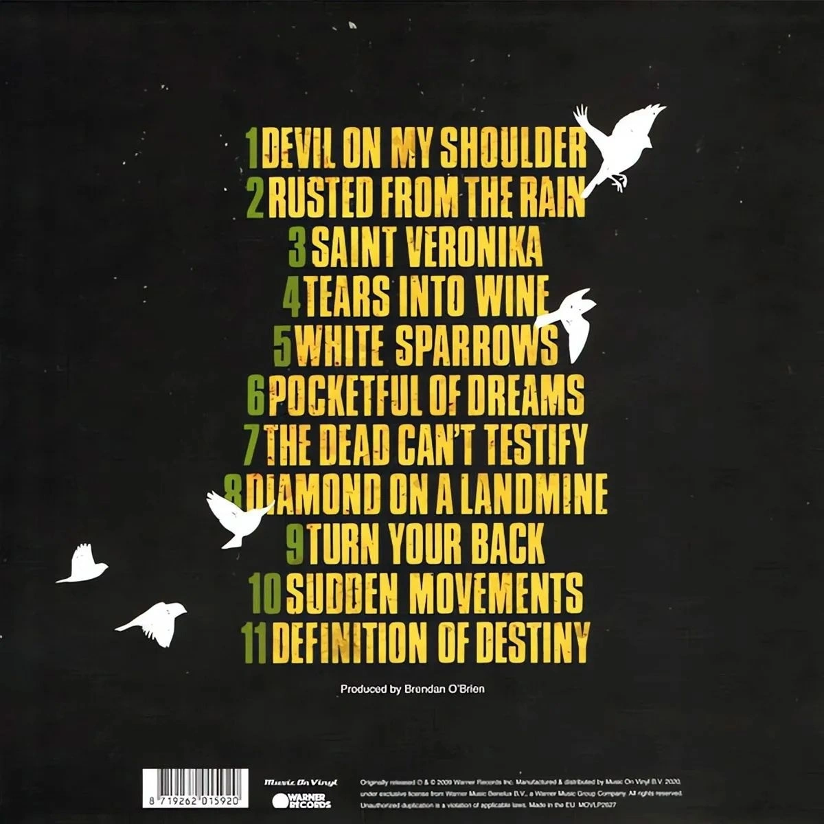 Devil On My Shoulder, Rusted From The Rain, Saint Veronika, Tears Into Wine, White Sparrows, Pocketful Of Dreams, The Dead Can't Testify, Diamond On A Landmine, Turn Your Back, B10 Sudden Movements, B11 Definition Of Destiny