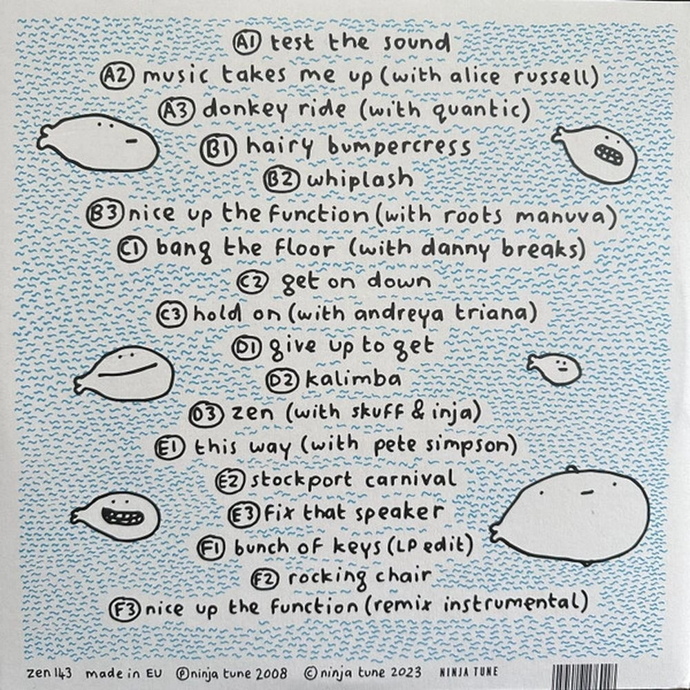 Test The Sound, Music Takes Me Up, Donkey Ride, Hairy Bumpercress, Whiplash, Nice Up The Function, Bang The Floor, Get On Down, Hold On, Give Up To Get, Kalimba, Zen, This Way, Stockport Carnival, Fix That Speaker, Bunch Of Keys (LP Edit), Rocking Chair, Nice Up The Function (Remix Instrumental)