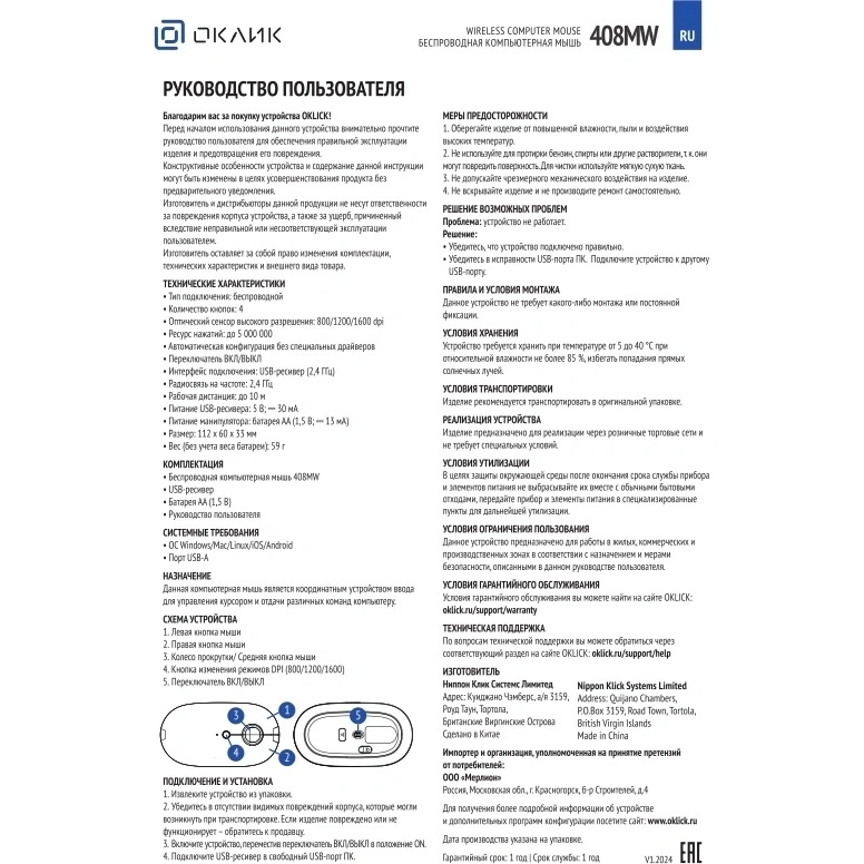 Мышь Oklick — это стильное и функциональное устройство, идеально подходящее для повседневного использования с ПК. Легкая и удобная, она весит всего 59 г, что обеспечивает комфорт при длительной работе.
