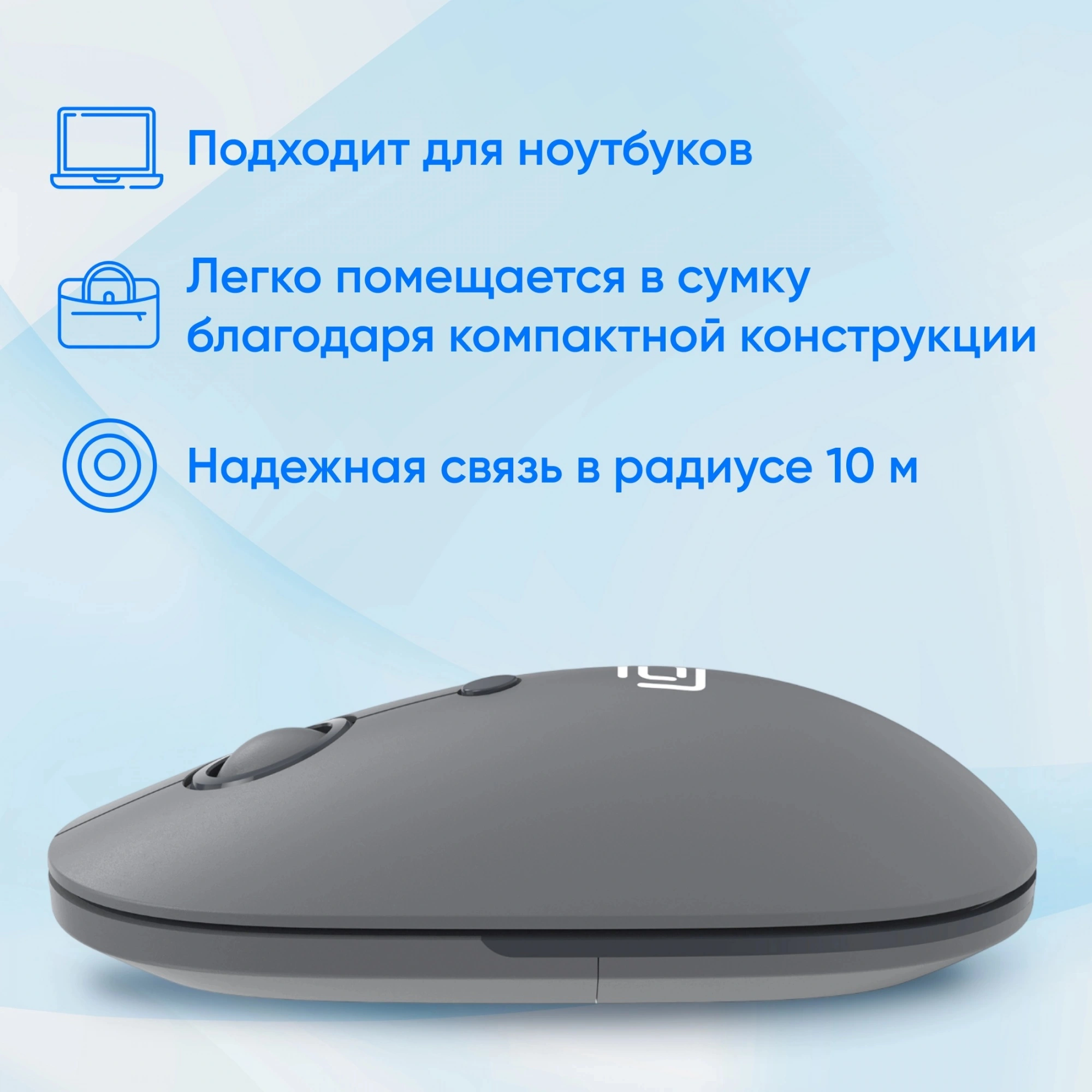 Подключение осуществляется через интерфейс USB Type-A, а радиус действия беспроводной связи составляет до 10 метров, что даёт свободу перемещения без потери сигнала. Оптический сенсор с разрешением 1600 dpi обеспечивает точное и быстрое отслеживание движений на различных поверхностях.