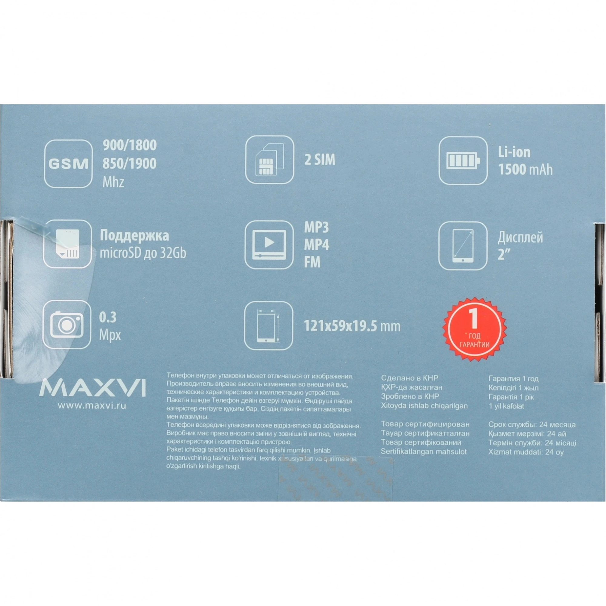 Maxvi B5ds предусматривает работу с двумя картами SIM. На экране 2 дюйма отображается четкая цветная картинка. Камера 0.3 Мп позволяет делать фотографии и видео. За продолжительную автономность телефона отвечает аккумулятор 1500 мА*ч. Док-станция с устойчивой подставкой помогает удобно осуществлять подзарядку.