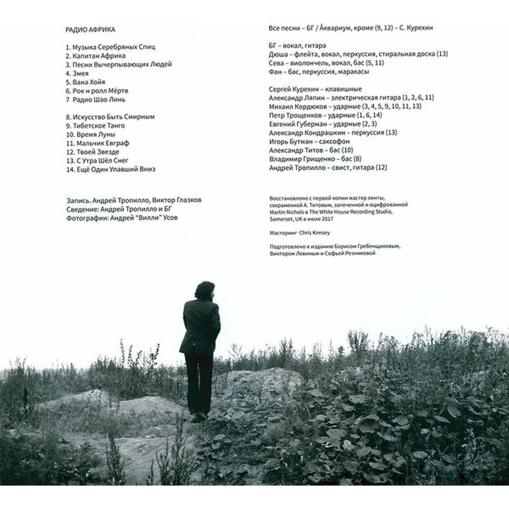 18+. Настоящий материал (информация) произведен, распространен и (или) направлен иностранным агентом Гребенщиковым Борисом Борисовичем, содержащимся в реестр иностранных агентов либо касается деятельности иностранного агента Гребенщикова Бориса Борисовича, содержащегося в реестре иностранных агентов. Восстановлено с первой копии мастер ленты, сохраненной А. Титовым, запеченной и оцифрованной Martin Nichols в The White House Recording Studio, Somerset, UK в июле 2017. Мастеринг: Chris Kimsey