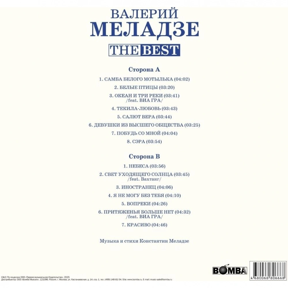Отзывы о товаре Валерий Меладзе - Best (White Vinyl) (4680068806675) виниловая пластинка