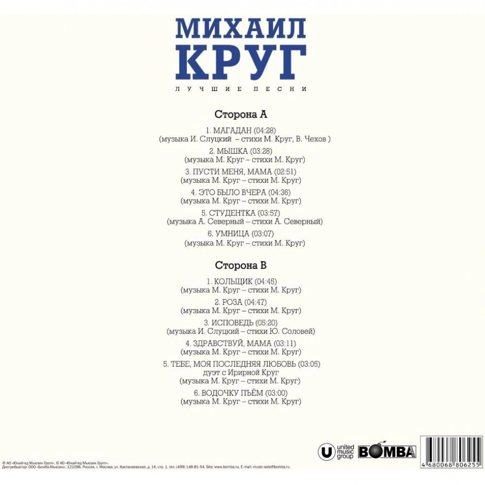 Михаил Круг - Лучшие Песни (White Vinyl) (4680068806637) виниловая пластинка - стоимость товара 2892 руб. в интернет-магазине КотоФото. Характеристики, фото и описание доступны на карточке товара. Купить товар можно на сайте онлайн или заказать по телефону 8(812)426-98-99 в Санкт-Петербурге, а забрать в пункте самовывоза или оформить доставку на дом.