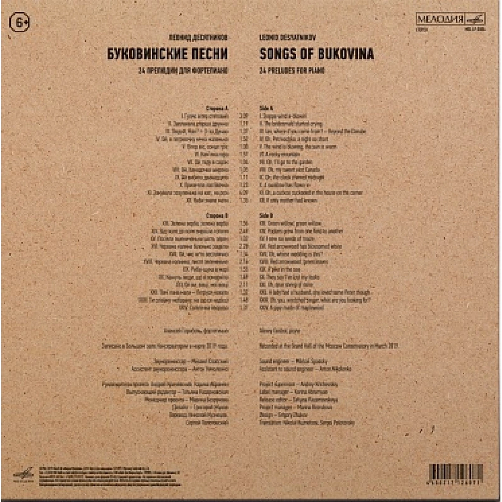 Отзывы о товаре Леонид Десятников - Буковинские Песни (Мелодия) (4600317200849) виниловая пластинка