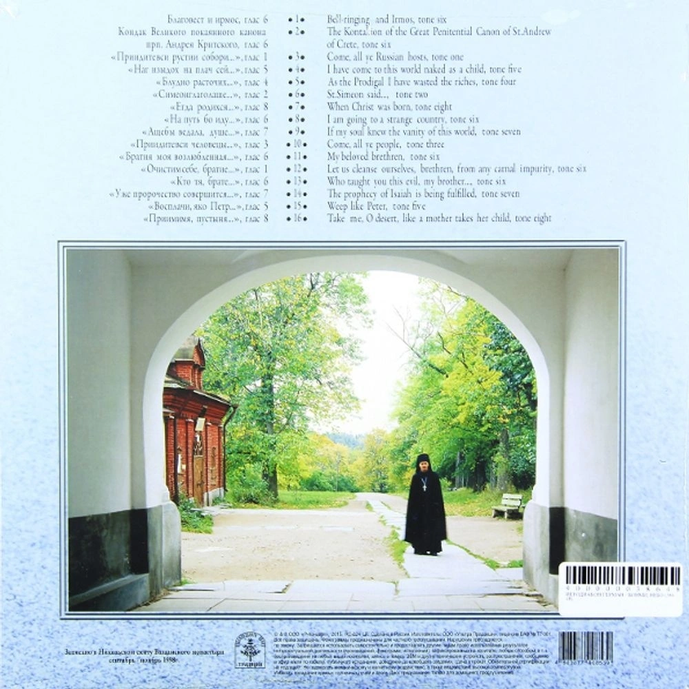 Благовест И Ирмос, Глас 6, Кондак Великого Покаянного Канона Прп. Андрея Критского, Глас 6, Приидите Вси Рустии Собори...", Глас 1, Наг Изыдох На Плач Сей...", Глас 5, Блудно Расточих...", Глас 4, Симеон Глаголаше...", Глас 2, Егда Родихся...", Глас 8, На Путь Бо Иду...", Глас 6, Аще Бы Ведала, Душе...", Глас 7, Приидите Вси Человецы...", Глас 3, Братия Моя Возлюбленная...", Глас 6, Очистим Себе, Братие...", Глас 1, Кто Тя, Брате...", Глас 6, Уже Пророчество Совершится...", Глас 7, Восплачи, Яко