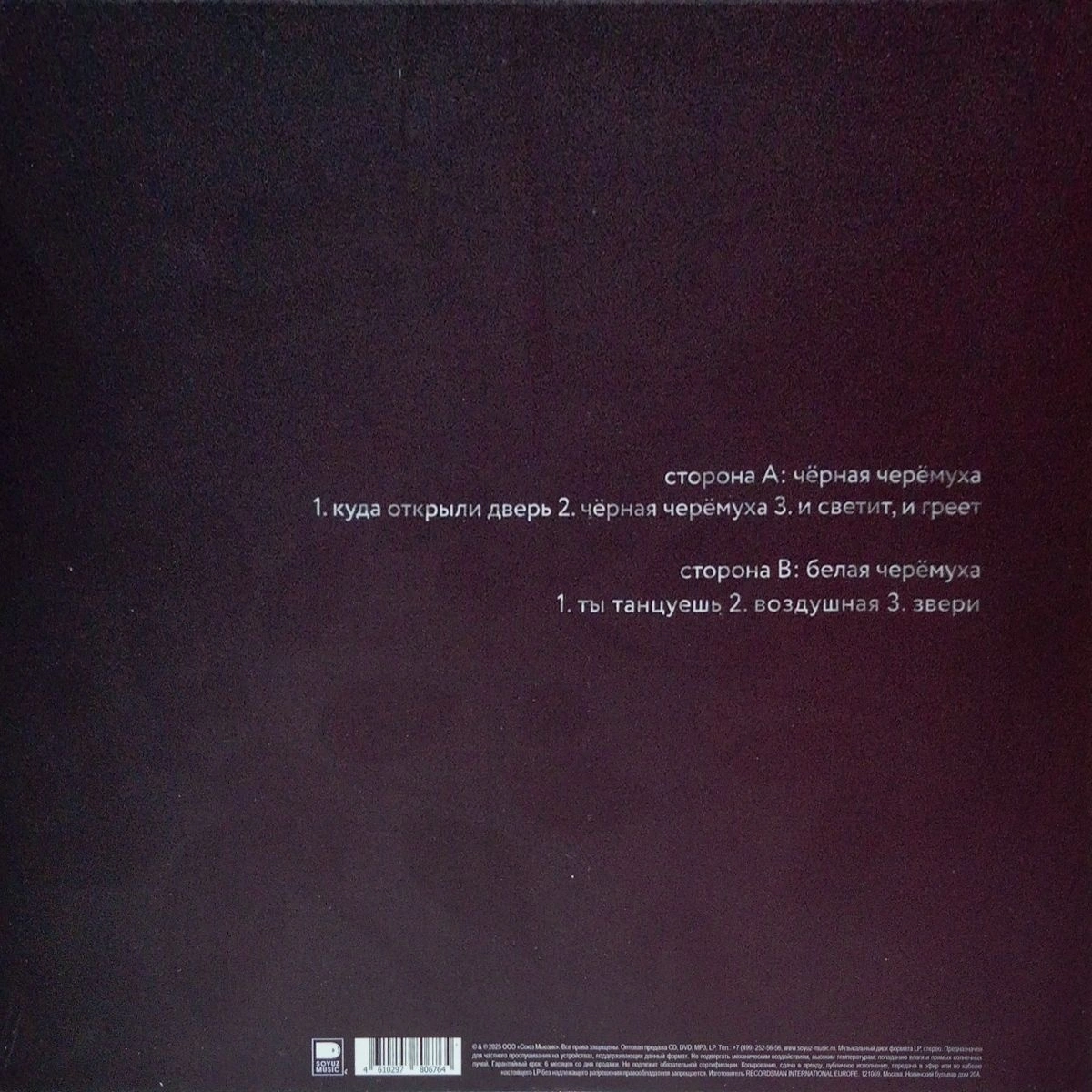 «Черёмуха» — новый альбом группы ДМЦ, в котором привычный драйв и узнаваемый почерк звучат ещё чище и мощнее. Это прямой, честный рок без лишнего лоска, с текстами, которые цепляют и остаются в голове. Белый винил и минималистичная обложка только подчёркивают содержание: здесь всё про музыку и настроение, без показной мишуры. Идеальный выбор для тех, кто слушает честный русский рок и хочет добавить в коллекцию пластинку, которую захочется ставить снова и снова.