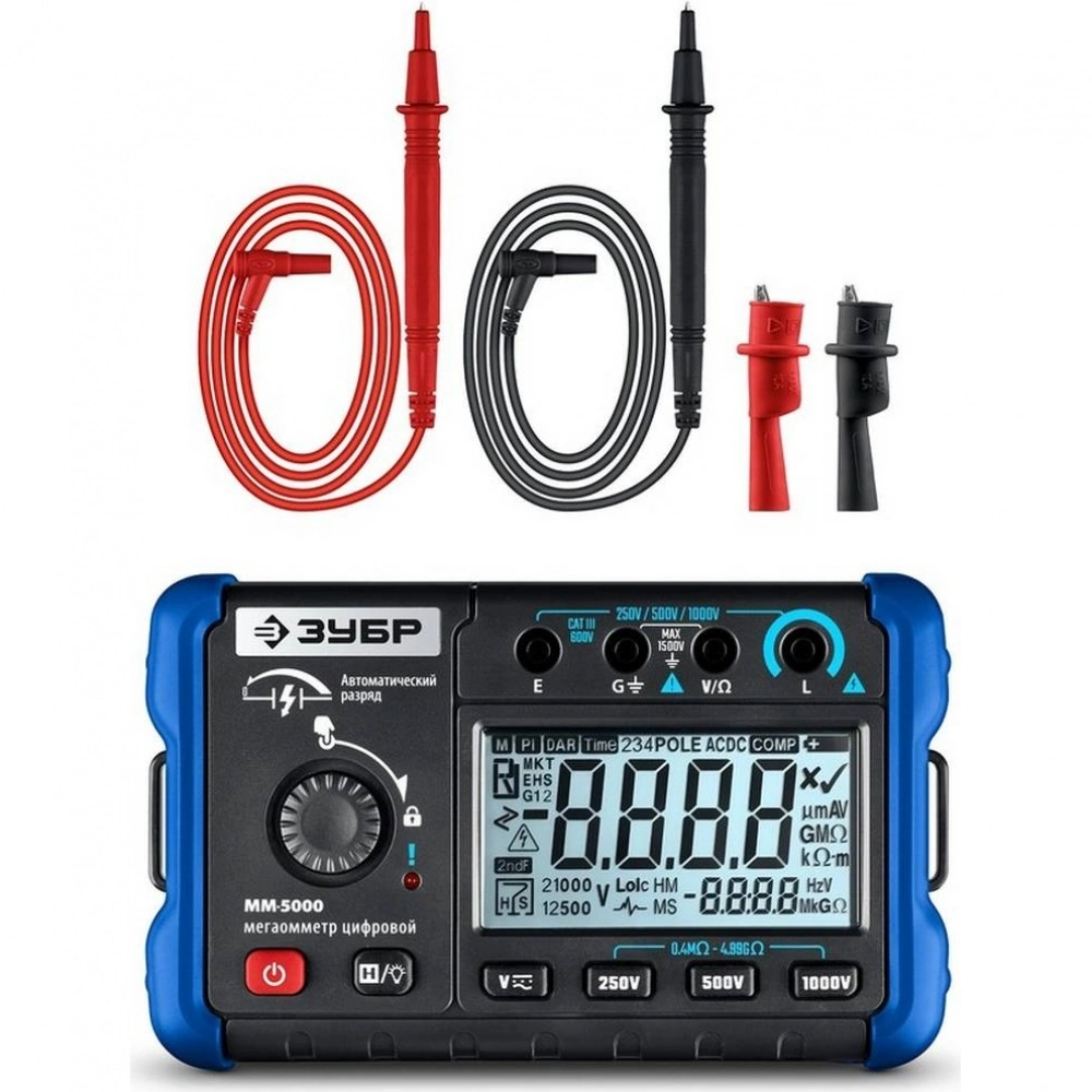 Мегаомметр цифровой ЗУБР ММ-5000, Профессионал (59847) - стоимость товара 7257 руб. в интернет-магазине КотоФото. Характеристики, фото и описание доступны на карточке товара. Купить товар можно на сайте онлайн или заказать по телефону 8(812)426-98-99 в Санкт-Петербурге, а забрать в пункте самовывоза или оформить доставку на дом.