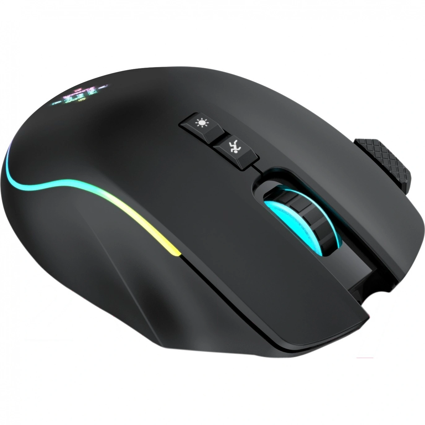 Эргономичная беспроводная игровая мышь Defender Thunder GM-213 с радужной подсветкой, двумя дополнительными боковыми кнопками, встроенным аккумулятором на 400 мАч и тефлоновыми глайдерами. Главная фишка модели - наличие кнопки "FIRE" для шутеров.