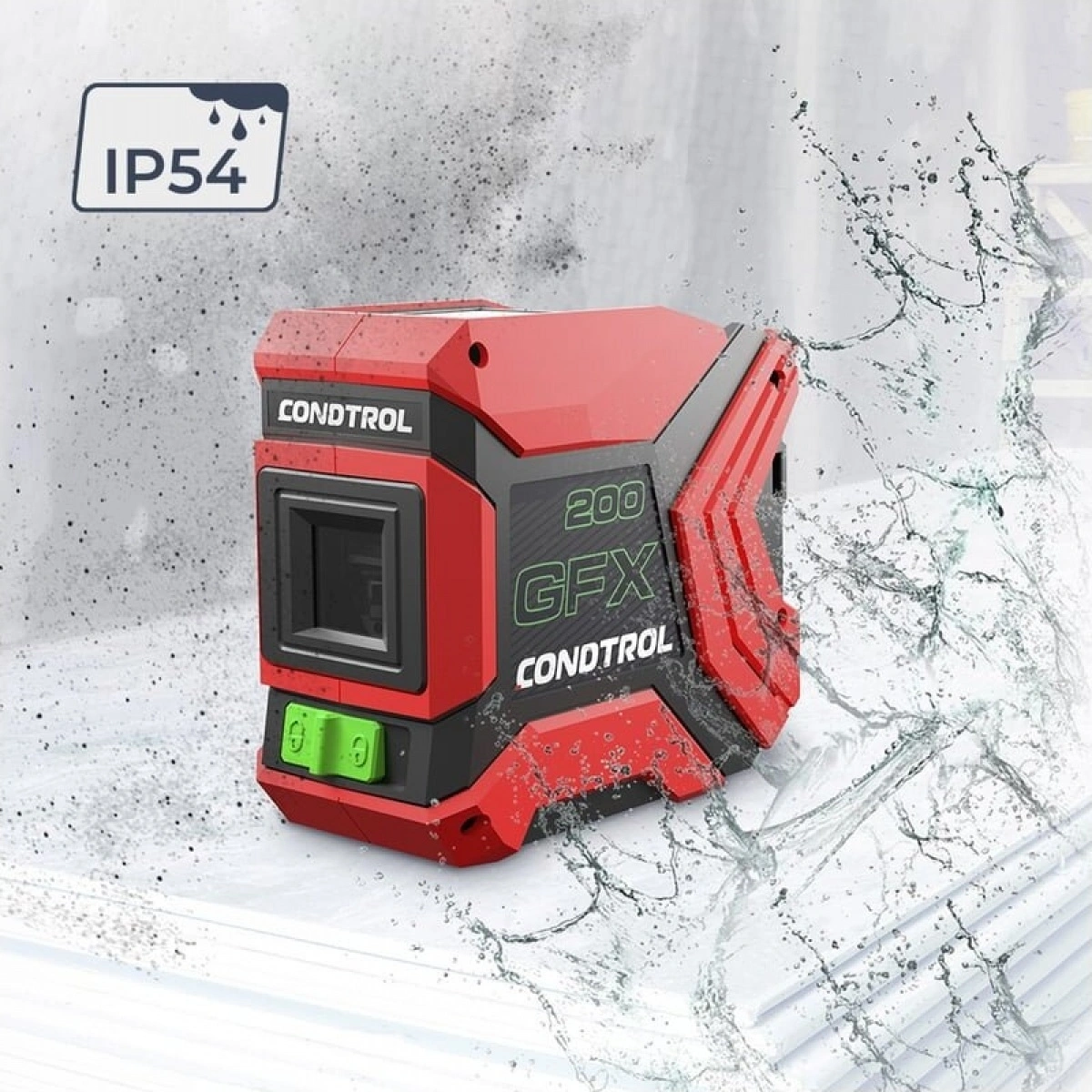 Condtrol GFX200— лазерный нивелир в компактном корпусе для помощи в разметке помещений, при ремонте или монтаже мебели. Цвет лазера — зеленый. Он воспринимается в 4 раза ярче красного при одинаковой мощности излучателя из-за особенностей человеческого зрения. В нивелире GFX 200 это позволяет лучше видеть линию на максимальных расстояниях работы прибора: 30 м или 60 м с детектором.
