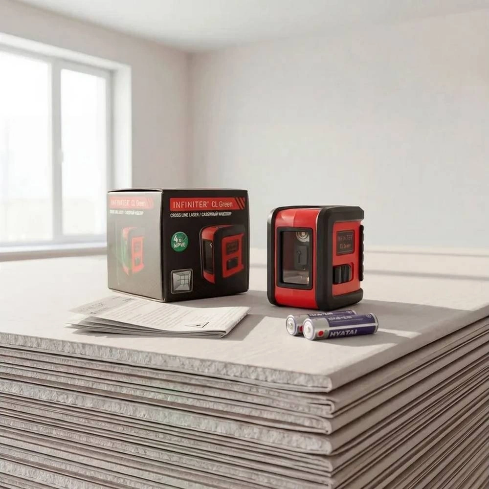 лазерный нивелир Infiniter CL Green; элементы питания AA — 2 шт.; руководство по эксплуатации.