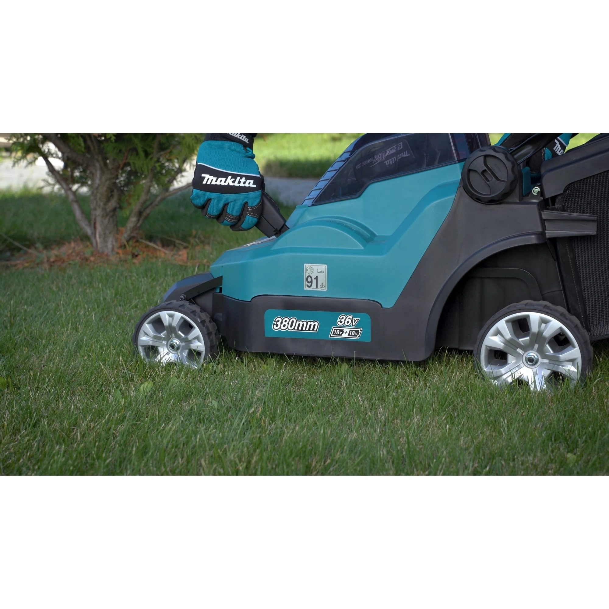 Аккумуляторная газонокосилка Makita DLM382PM2 подходит для профессионального ухода за газоном. Комплектуется двумя аккумуляторами, что способствует продолжительной работе. Прочная дека обладает стойкостью к механическим повреждениям. Вместительный травосборник позволяет реже прерываться на его опустошение. Предусмотрено 13 режимов регулировки высоты скашивания.