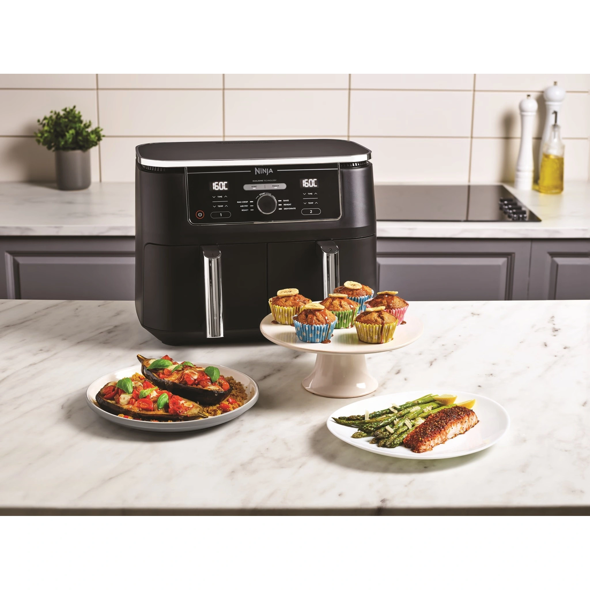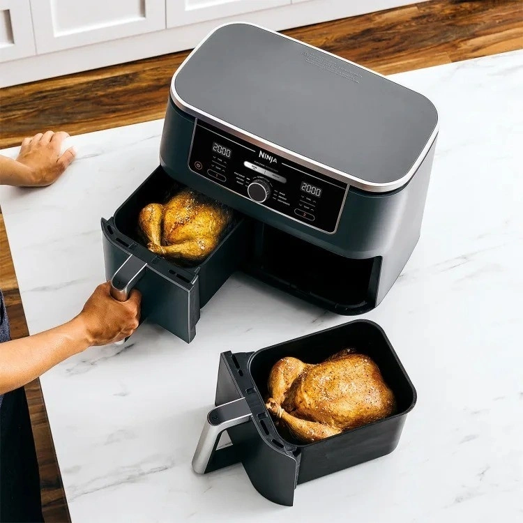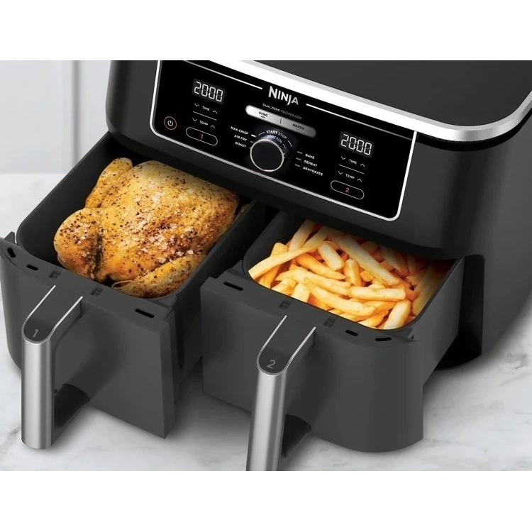 Аэрогриль Ninja — это высокоэффективное устройство для приготовления разнообразных блюд, которое станет незаменимым помощником на вашей кухне. С мощностью 2470 Вт аэрогриль обеспечивает быстрое и равномерное приготовление пищи. Оснащённый современным нагревательным элементом в виде трубчатого электронагревателя (ТЭН), он позволяет точно контролировать температуру приготовления благодаря эффективной системе регулировки температуры от 40 °C до 240 °C.