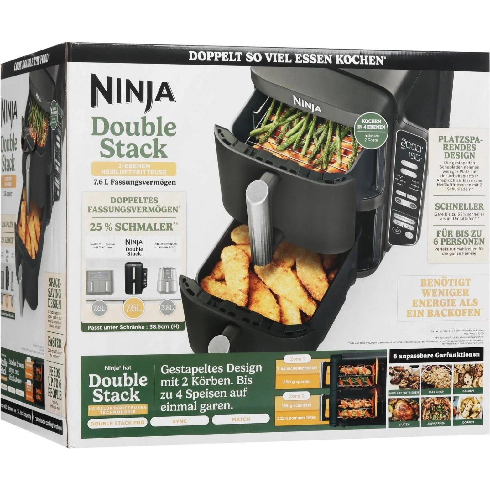 Выполненный в элегантном черном цвете, аэрогриль Ninja станет стильным дополнением к вашему кухонному интерьеру. Возможность регулировки температуры в диапазоне от 40 °C до 240 °C обеспечивает гибкость для приготовления различных блюд, будь то что-то нежное или более интенсивно приготовленное. Таймер позволяет точно контролировать время готовки, чтобы результаты всегда радовали.