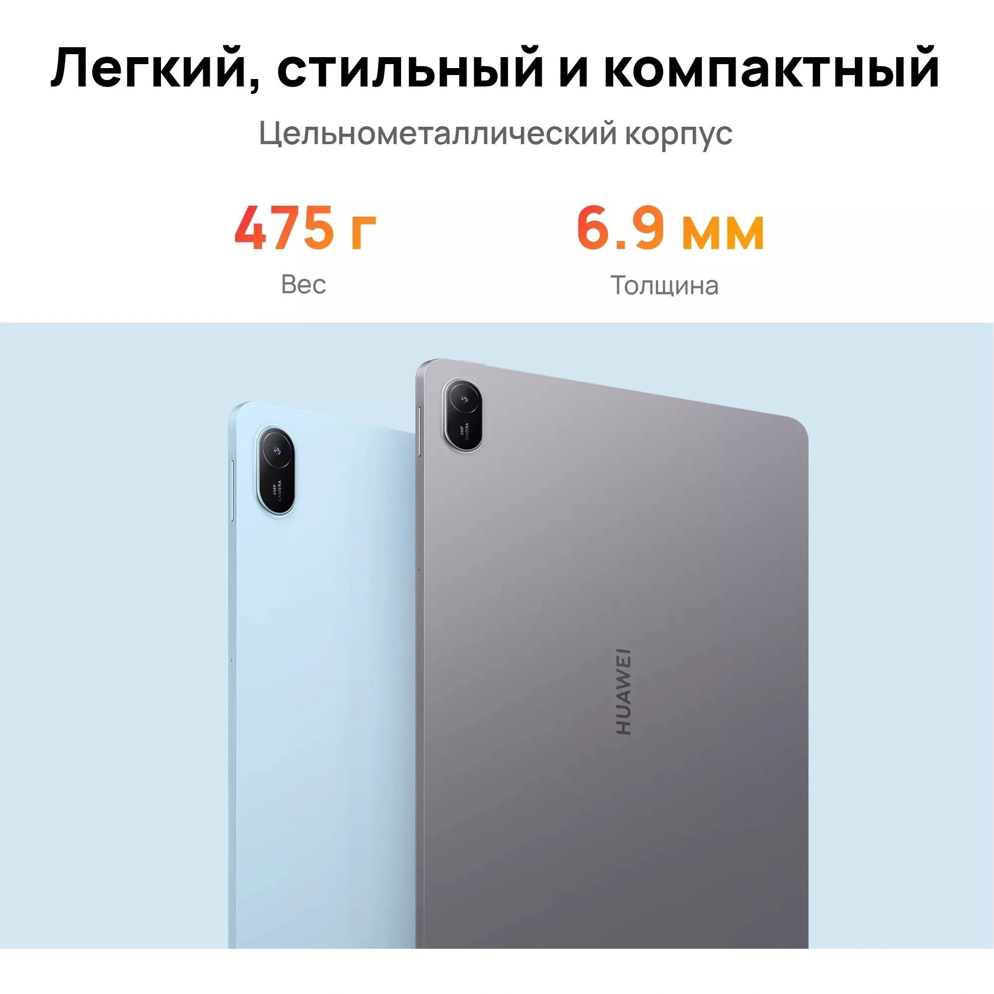 * Стильный серый цвет и компактный монолитный корпус делают планшет не только функциональным, но и эстетически привлекательным.