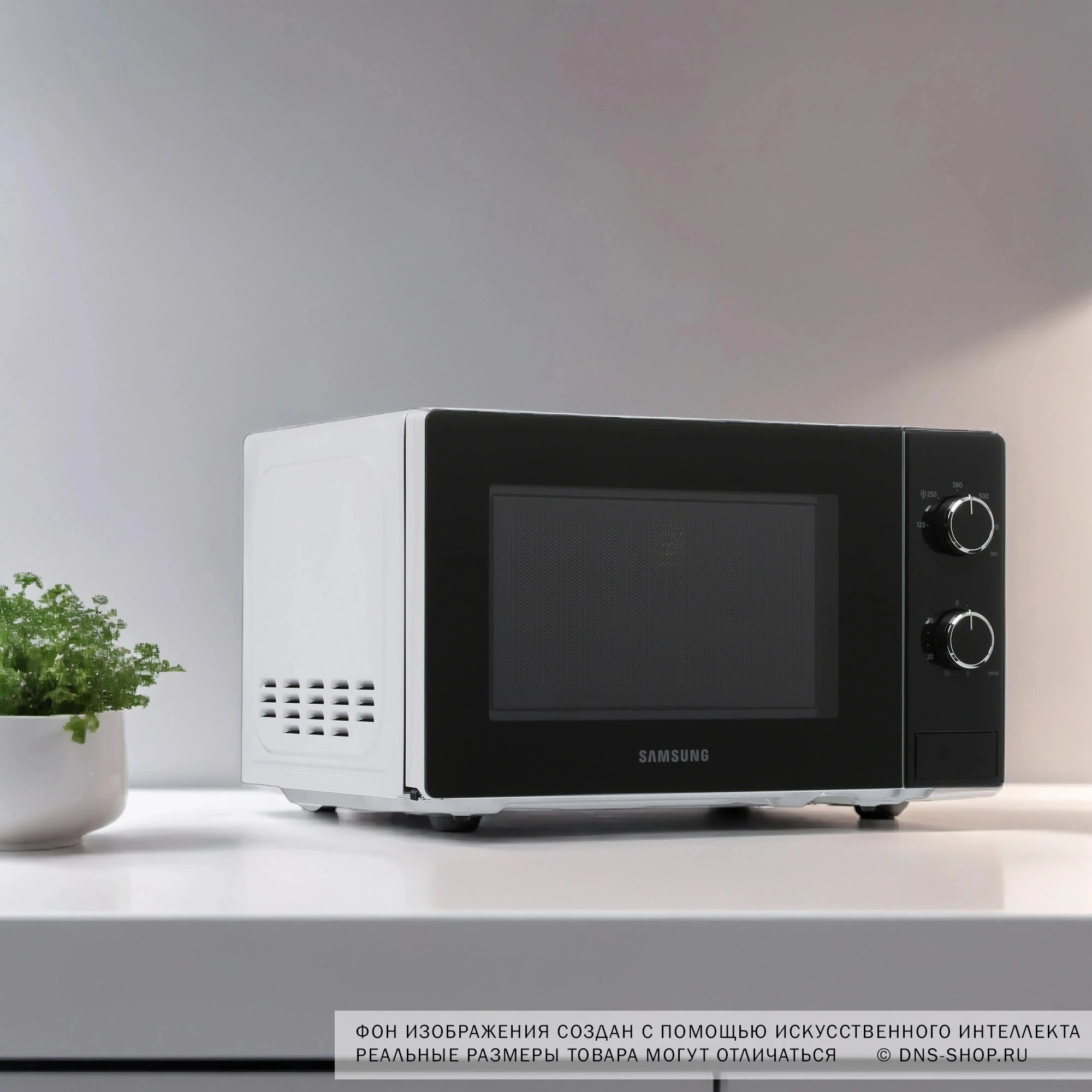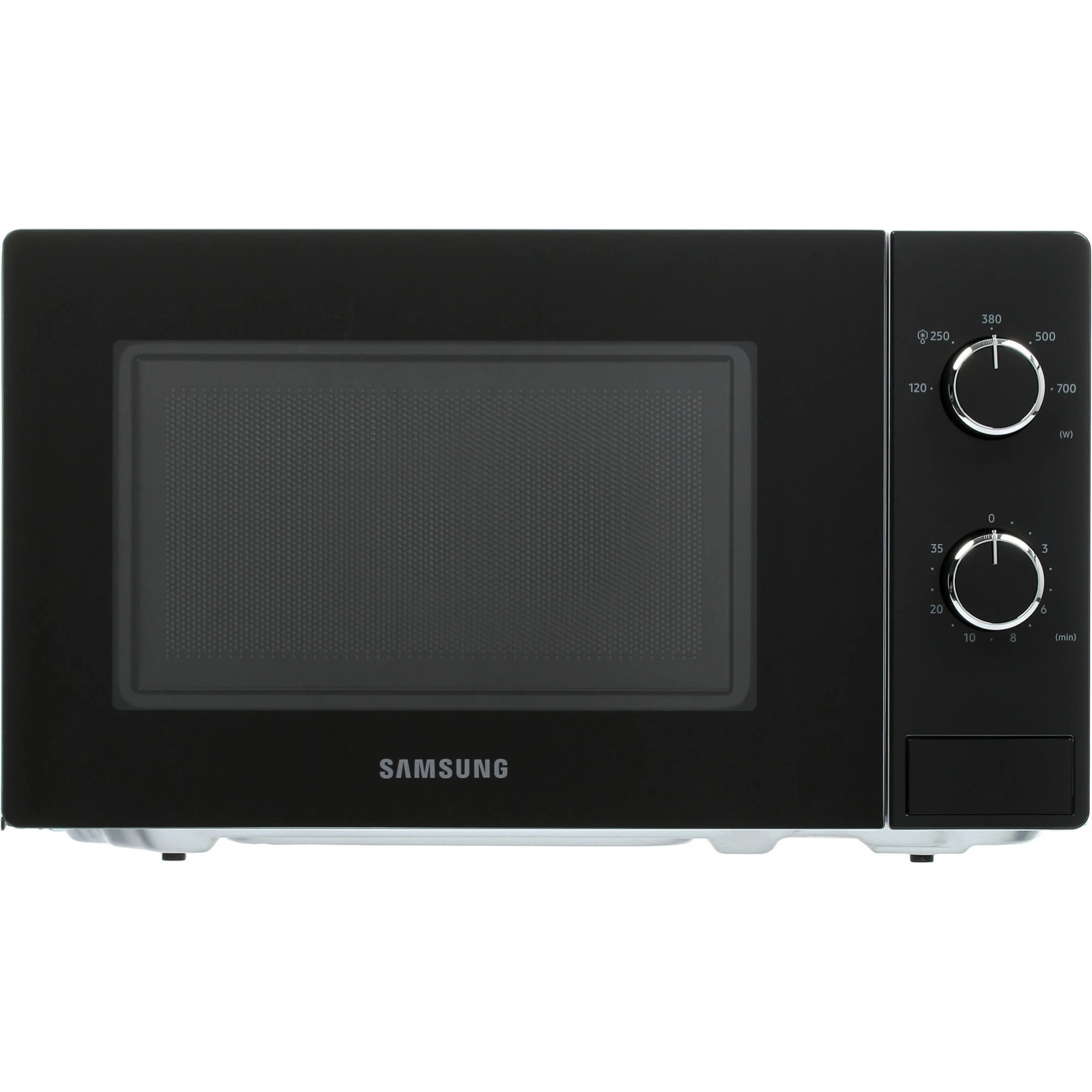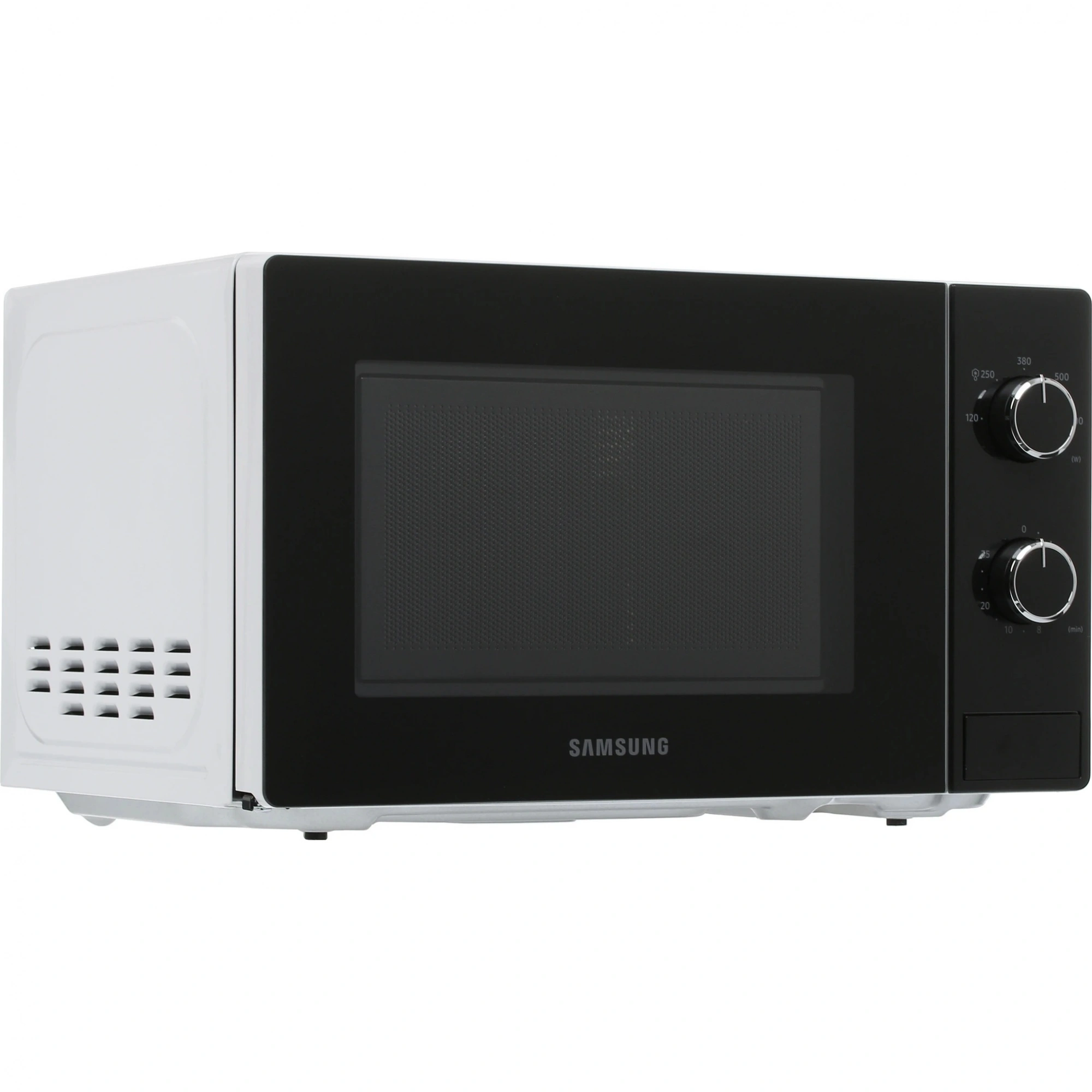 Микроволновая печь Samsung оснащена поворотным столом с блюдом диаметром 25.5 см для быстрого и равномерного прогрева. 2 поворотных рычага позволяют выбирать желаемую мощность и время работы. Вы сами определяете параметры для бережной разморозки продуктов, быстрого разогрева и приготовления блюд по рецептам для СВЧ. Пнчь оснащена камерой на 20 л с простой в уходе поверхностью. Автоматическая подсветка при включении позволяет контролировать процесс готовки за закрытой дверцей. По окончании программы срабатывает громкий звуковой сигнал.