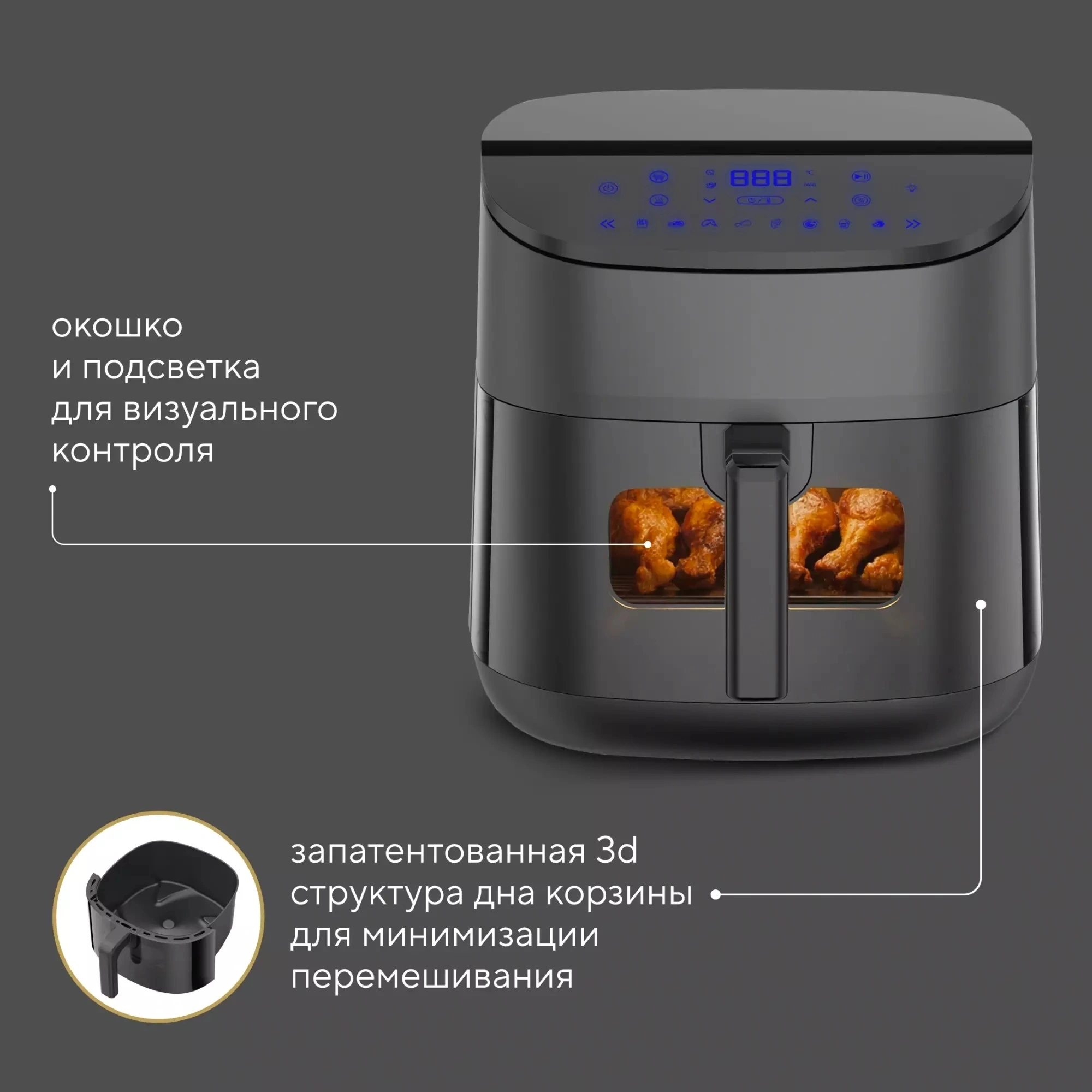 Аэрогрили HYUNDAI - это современные и функциональные устройства, созданные специально для кулинарных экспериментов и здоровой готовки. Данный аэрогриль отличается мощностью 3000 Вт, что обеспечивает быструю и эффективную жарку, запекание и приготовление различных блюд. Элегантный черный цвет модели гармонично впишется в интерьер любой кухни, добавляя ей стиль и изысканность. Сенсорное управление делает использование аэрогриля интуитивно понятным и удобным, позволяя легко выбирать нужные настройки и режимы. Выбирая аэрогриль HYUNDAI, вы получаете надежного помощника для создания кулинарных шедевров каждый день.