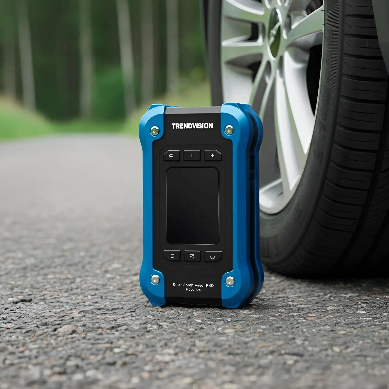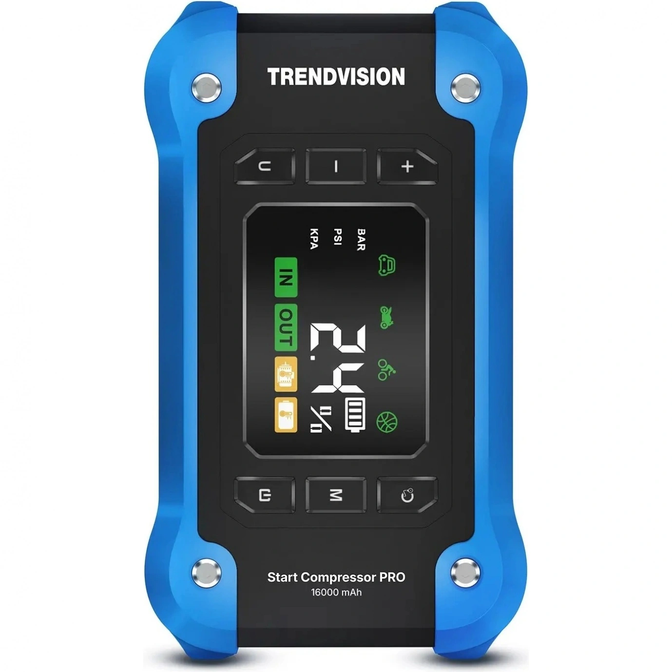 TrendVision Start Compressor, Кейс для устройства, Провод для зарядки, Воздушный шланг, Комплект насадок, Инструкция с гарантийным талоном