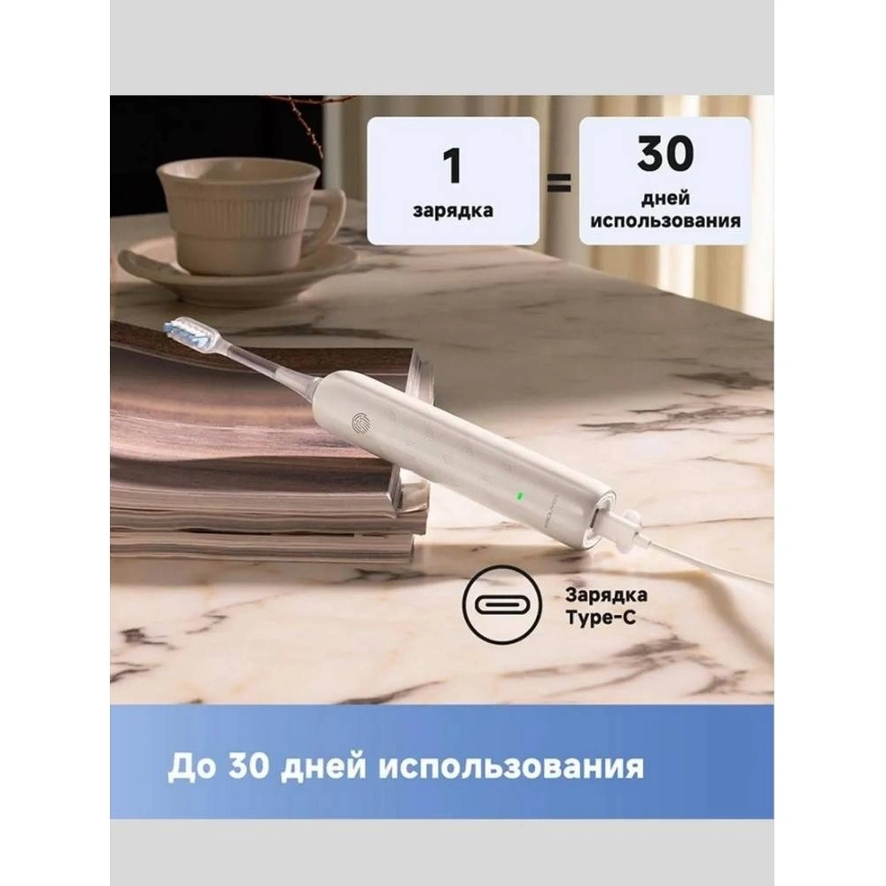 Насадка 3 в 1 — 1 шт.; Насадка для чувствительных зубов — 1 шт.; Руководство пользователя — 1 шт.; Кабель Type-C — 1 шт.; Держатель насадки — 2 шт.; Ручка электрической зубной щетки — 1 шт.; Инструкция по безопасности — 1 шт.