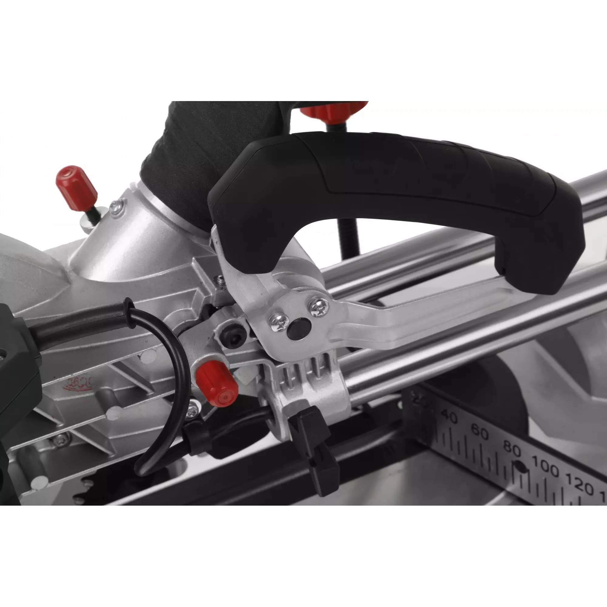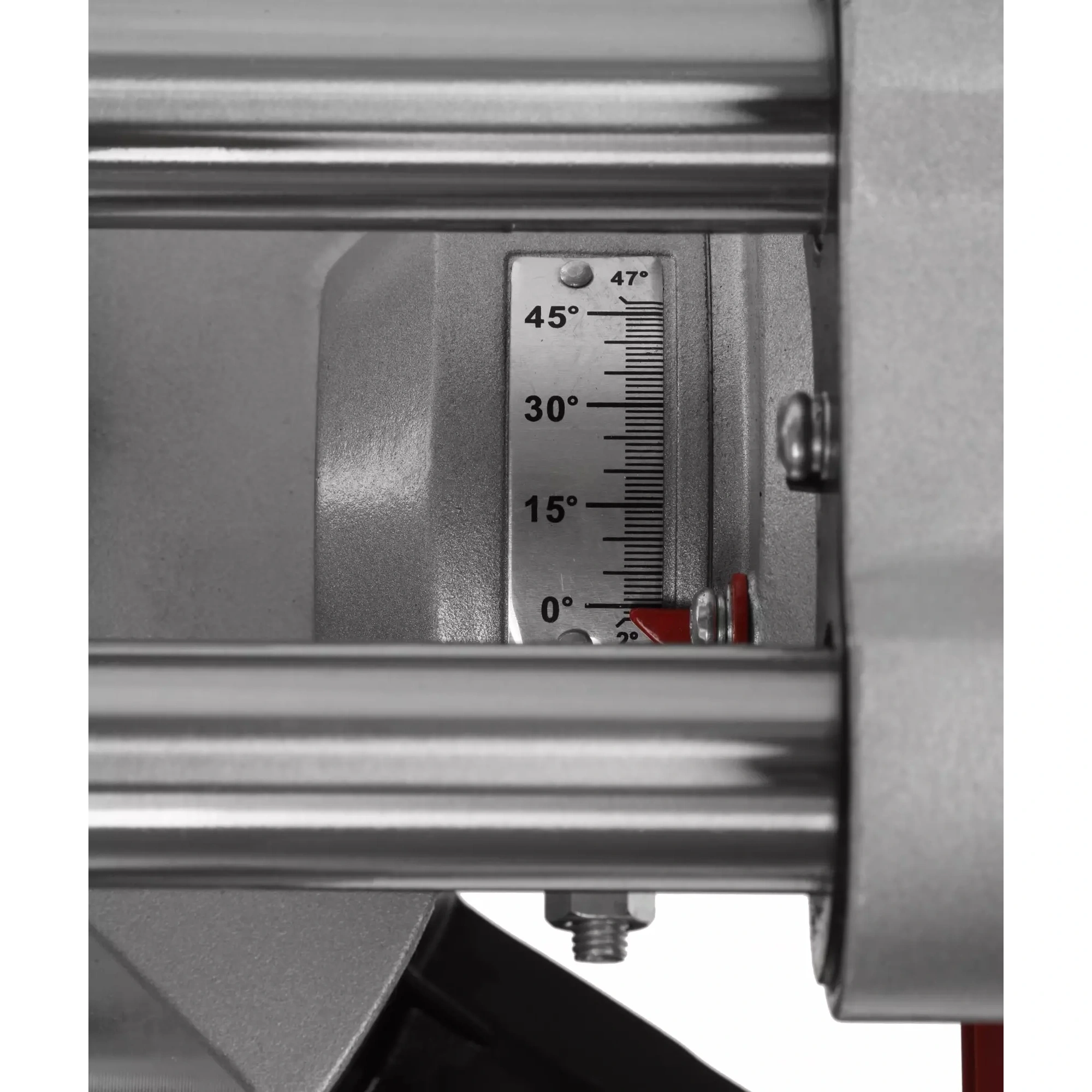 Пила оборудована пылесборником, способствующим поддержанию чистоты рабочего места, однако подключения к пылесосу не предусмотрено. Эргономичный дизайн и умеренный вес в 13,5 кг позволяют легко перемещать инструмент по рабочей площадке. Угол наклона в 47 градусов добавляет дополнительную универсальность в выполнении различных резов.