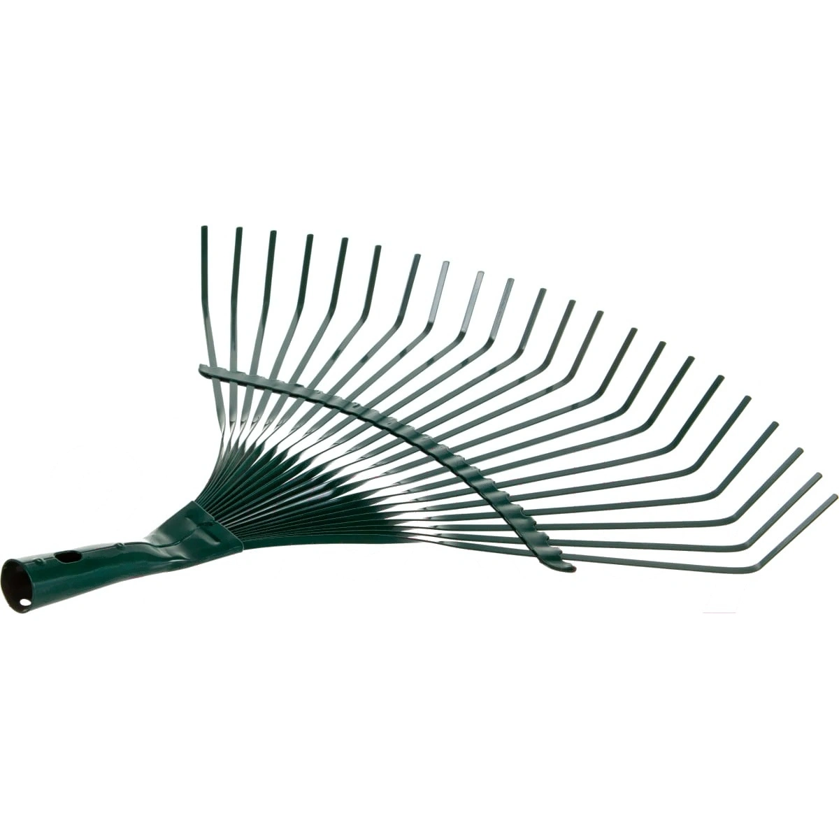 Грабли Grinda 421877, веерного типа, гибкий и легкий инструмент, предназначенный для проведения садово-огородных работ, сбора опавших листьев и скошенной травы. Ширина рабочей части инструмента, составляет 41 см. Плоские зубья изготовлены из качественной углеродистой стали с защитным красочным покрытием.