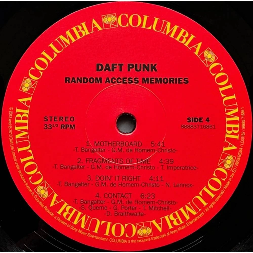 Give Life Back To Music, The Game Of Love, Giorgio By Moroder, Within, Instant Crush, Lose Yourself To Dance, Touch, Get Lucky, Beyond, Motherboard, Fragments Of Time, Doin' It Right, Contact
