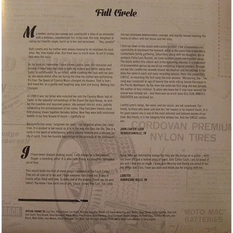 Loretta Lynn - Full Circle (0888751689718) виниловая пластинка - по цене 2508 руб. в Санкт-Петербурге. Приобрести товар можно в интернет-магазине КотоФото на сайте, либо по телефону 8(812)426-98-99 в Санкт-Петербурге. Информация о характеристиках и описании указана в карточке товара.