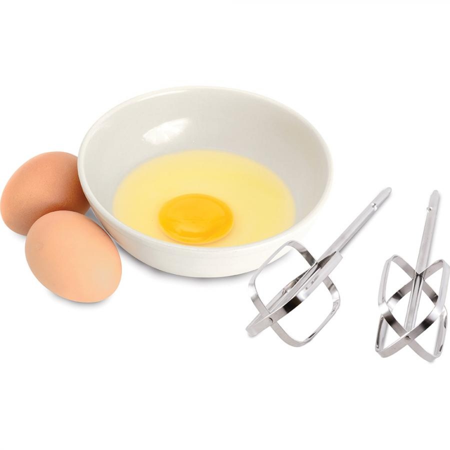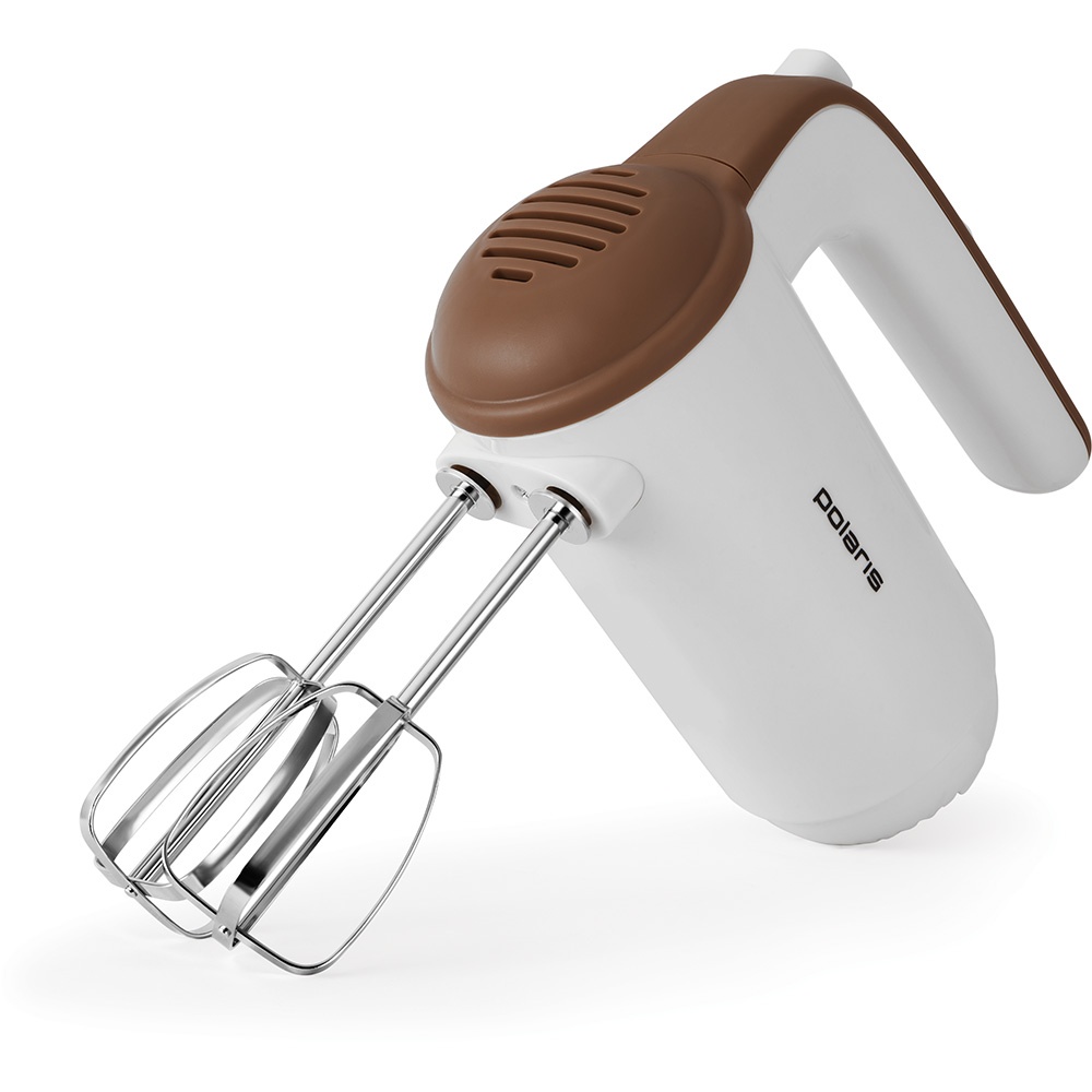 Ручной миксер. 2 венчика для взбивания. 2 крюка для замешивания теста. 5 скоростных режимов + Турбо. Кнопка освобождения насадок.