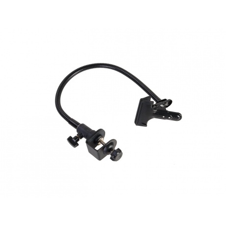 Комплект из гибкой штанги и винтового зажима Falcon Eyes CL-35FL. С одной стороны штанги установлена клипса с резиновыми захватами шириной 75 мм, с другой — стандартный стоечный палец с винтом 3/8, палец устанавливается во втулку винтового зажима. Зажим CL-35FL с втулкой 5/8 используется для установки студийного оборудования на плоскостях толщиной до 35 мм. Штанга, клипса и зажим изготовлены из металла, втулка — из прочного пластика.