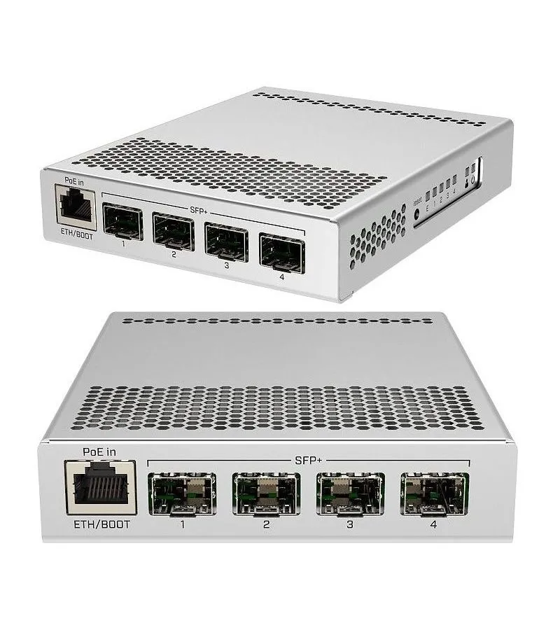 Компактный управляемый коммутатор настольного исполнения на базе SwOS / RouterOS оснащён 4 портами SFP+ и гигабитным Ethernet-портом. отсутствие вентиляторов гарантирует его бесшумную работу. Функция двойной загрузки (Dual boot) предоставляет возможность выбора операционной системы: RouterOS или SwOS. Если вы предпочитаете упрощённую, разработанную для коммутаторов ОС с характерными функциями, выбирайте SwOS. А если хотите использовать маршрутизацию и другие функции 3 уровня на своём CRS-устройстве — загружайте RouterOS. Выбор необходимой операционной системы доступен из RouterOS, SwOS или в настройках загрузчика RouterBOOT. Полный набор функций по привлекательной цене обеспечивает лучшее на рынке соотношение цена / производительность.