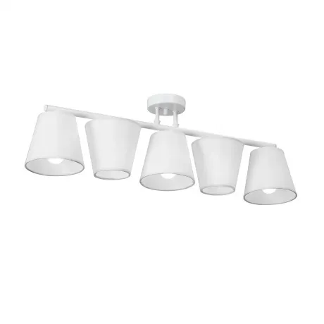 Потолочная Светильник V4590-0/5PL — модель от российской компании Vitaluce. Основа изделия выполнена из металла белого цвета, абажур из ткани белого цвета. Светильник будет хорошо смотреться в кухне и удачно впишется в интерьер в стиле арт-деко. Модель имеет 5 абажуров и 5 ламп, оснащена цоколем E14 с максимальной мощностью лампочки 40 Вт и рассчитана на освещение площади до 10 кв. м. Длина — 75 см. Степень защиты от влаги и пыли — IP20. Светильник устанавливается на монтажную пластину и поддерживает подключение диммера.