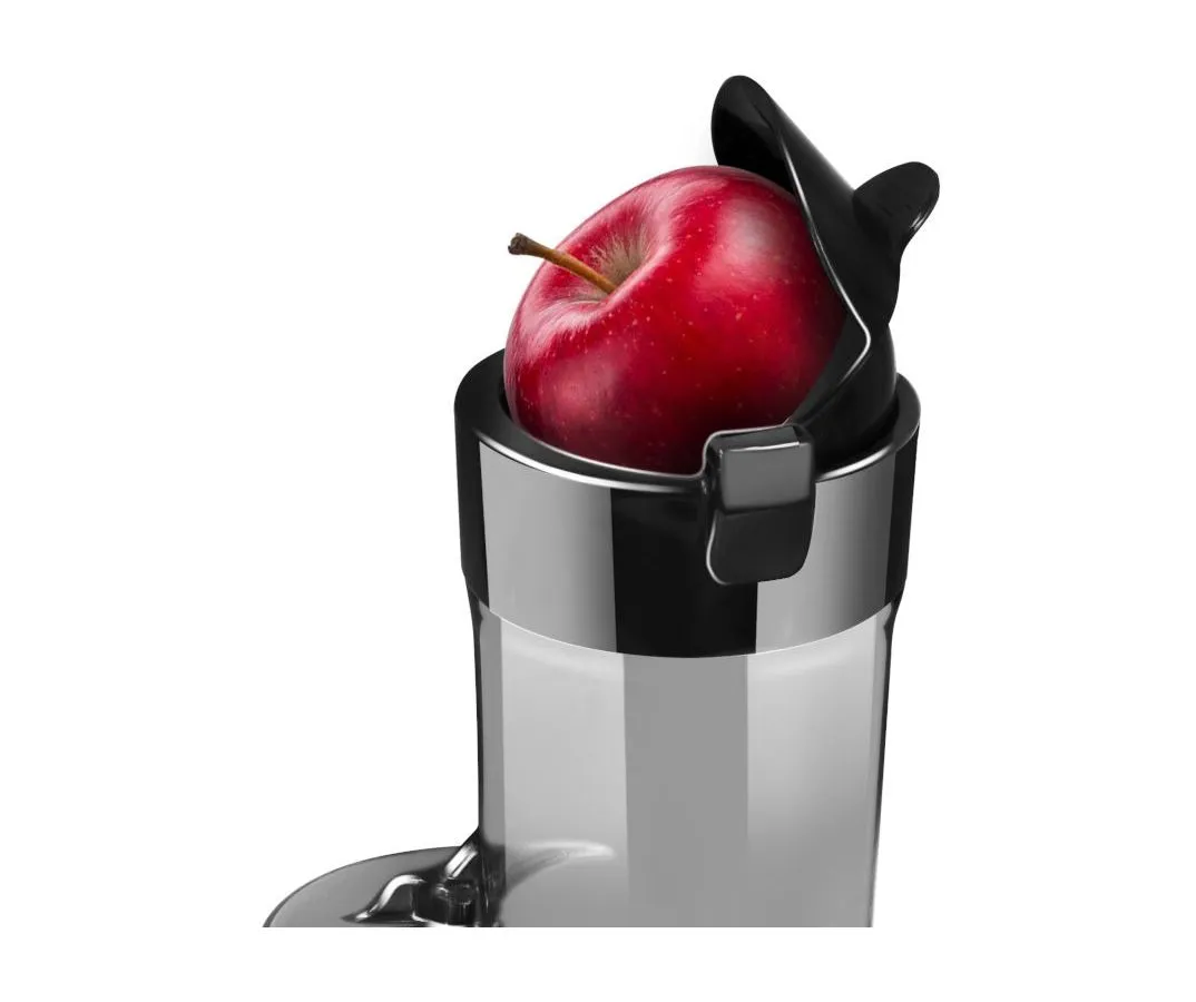 Благодаря широкой горловине диаметром 84 мм можно не тратить много времени на предварительное измельчение продуктов. Загружайте плоды целиком или крупными кусками, мощный шнек и качественный фильтр с легкостью справятся со своей задачей!