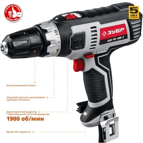 • Дрель-шуруповерт сетевая Зубр ДШ-М1-400-2 - фото 2