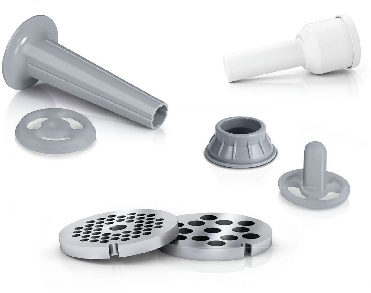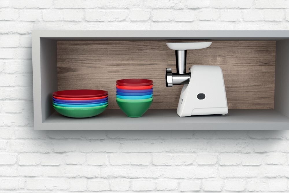 Отличное качество фарша и быстрый результат благодаря высокой мощности мотора до 1500 Вт (при блокировке мотора). Размер отверстий формовочных дисков: 3,8 / 8 мм. Быстрая сборка, высокая надежность. Размер ножа 5.