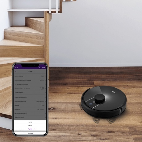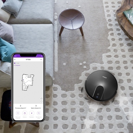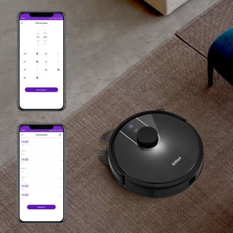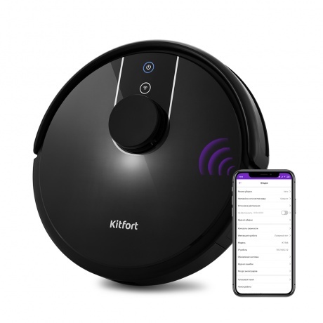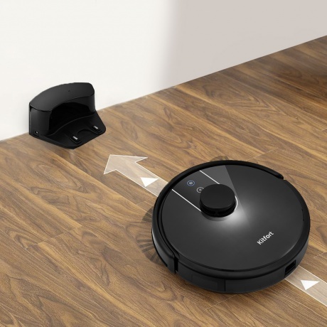 Мобильное приложение RoboKit предназначено для управления стильным и современным роботом-пылесосом Kitfort КТ-566 со смартфона по сети Wi-Fi. Находясь вне дома, вы можете дистанционно запустить, поменять режим, посмотреть карту уборки помещения и т.д. Прибор оснащён лазерным дальномером (лидар) для построения карты помещения. Лидар представляет собой установленный на оси лазерный излучатель, который испускает лучи в горизонтальной плоскости и по скорости их отражения определяет расстояние до предметов. Во время уборки пылесос рисует карту уборки и отображает её в мобильном приложении. Вы также можете установить уборку по ограниченной территории, указав в приложении, какую область необходимо убрать. Либо настроить уборку вне запрещённой территории. С помощью мобильного приложения вы можете установить уборку по часам в любые дни недели. Например, чтобы робот-пылесос убирал квартиру, пока вы находитесь на работе. Также вы можете настроить отключение звука сообщений пылесоса в определенные часы. 3 режима уборки + уборка ограниченной территории и уборка вне запрещённой зоны. Автоматический режим (уборка вдоль стен и зигзагом на основе данных от датчиков), тихий режим (пониженная мощность, скорость движения и вращения турбощётки), турбо (увеличенная мощность и скорость вращения турбощётки, пониженная скорость движения). Турбощётка отлично убирает ковры, сначала приподнимая ворс, выметая из него мусор и затем засасывая его. На твёрдой поверхности турбощётка работает как веник. Боковые щётки выступают за габариты пылесоса, что позволяет собирать пыль вдоль плинтусов. Вы можете провести влажную уборку, прикрепив к пылесосу моющий модуль с резервуаром для воды и тряпкой, которая автоматически увлажняется во время работы. Робот сначала засасывает пыль и мусор в пылесборник, а затем увлажняет пол тряпкой. Благодаря оптическим датчикам, которые срабатывают на вертикальные препятствия и при столкновении с ними, и микропереключателям, пылесос меняет направление движения и продолжает уборку. Датчики поверхности не дают упасть с больших перепадов высоты. В пылесборнике используется двойная фильтрация. Пыль проходит через фильтр грубой очистки, а затем через фильтр тонкой очистки. Пылесборник легко вынимается и чистится после уборки. Когда заряд аккумулятора будет заканчиваться, пылесос сам разыщет базу и встанет на зарядку. Также вы самостоятельно можете вернуть пылесос на базу, дав ему команду с пульта управления или из мобильного приложения.