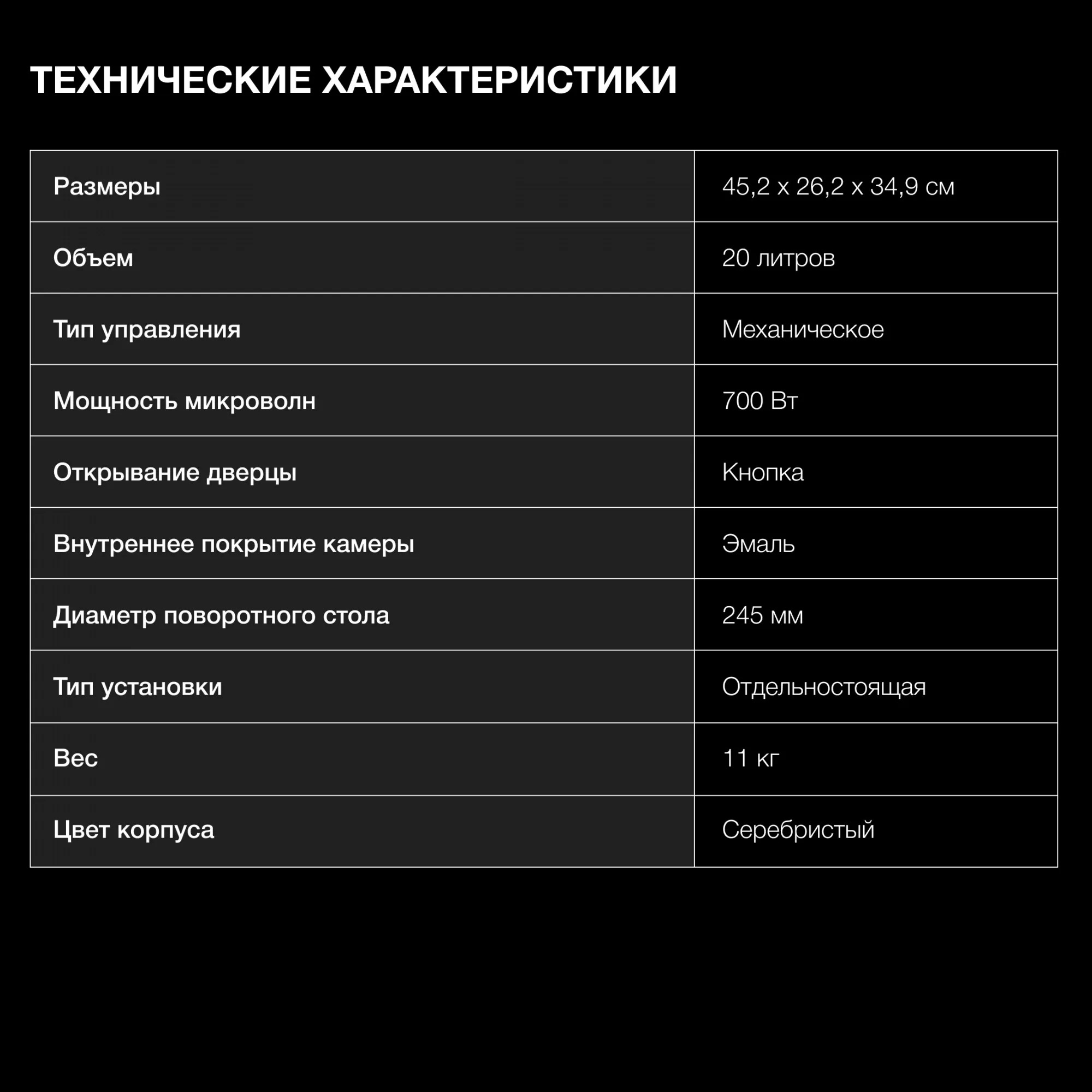 Описание товара Микроволновая печь Hyundai HYM-M2042 серебристый