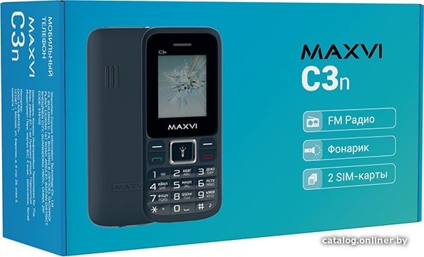 Maxvi C3n - простой и удобный в использовании телефон, оснащенный дисплеем 1,77", АКБ 800 мАч, ярким фонариком с удобной клавишей включения. Эта модель отличается от модели Maxvi C3i наличием зарядного устройства в комплекте.