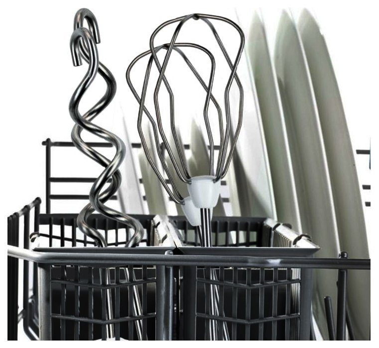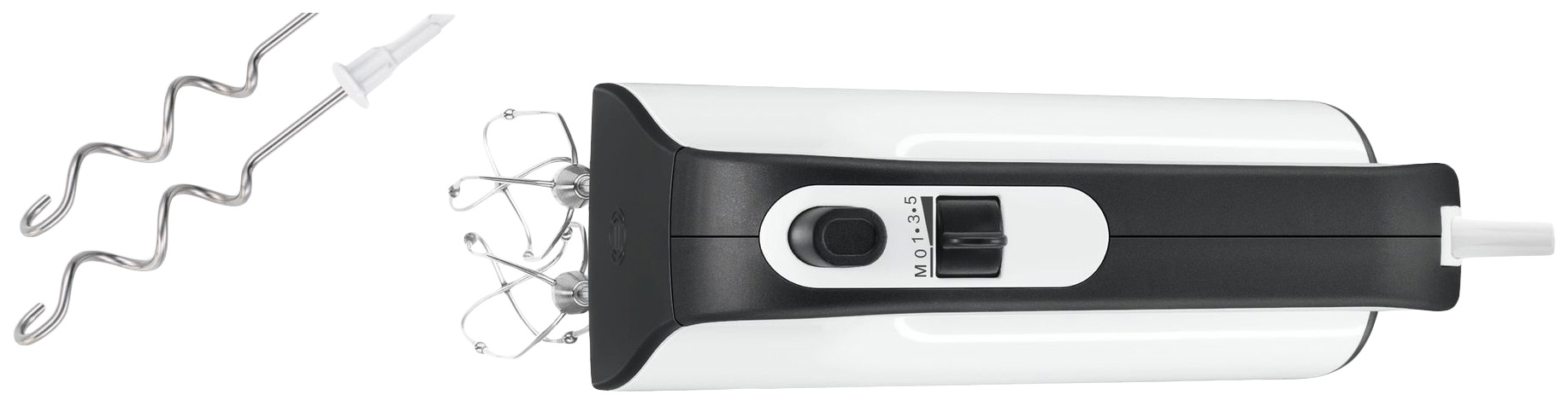 Ручной миксер; мощность 450 Вт; количество скоростей 5; режим смешивания импульсный; кнопка выброса насадок; насадки: для теста, венчики для взбивания.