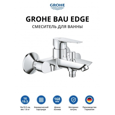 Смеситель для ванны Grohe Bau Edge 23604001 - характеристики и описание, фото и цены представлены на карточке товара. Для того чтобы купить товар по цене 10609 руб., вам надо позвонить по телефону 8(800)505-43-75 в Тольятти, или оформить покупку в личном кабинете.