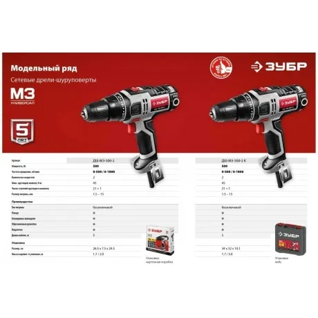 Описание товара Дрель-шуруповерт сетевая Зубр ДШ-М3-500-2