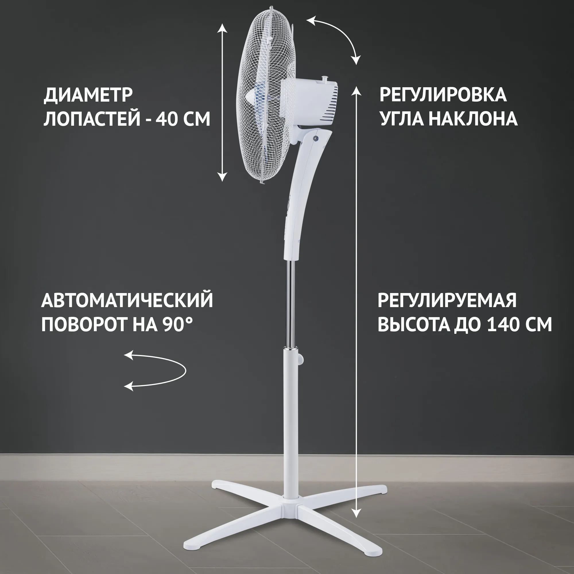 Современный дизайн. Продуманная конструкция для сборки без дополнительного инструмента. Прозрачные лопасти специальной аэродинамической формы для снижения уровня шума и стабильно направленного потока. Пульт дистанционного управления. Ступенчатая регулировка угла наклона.