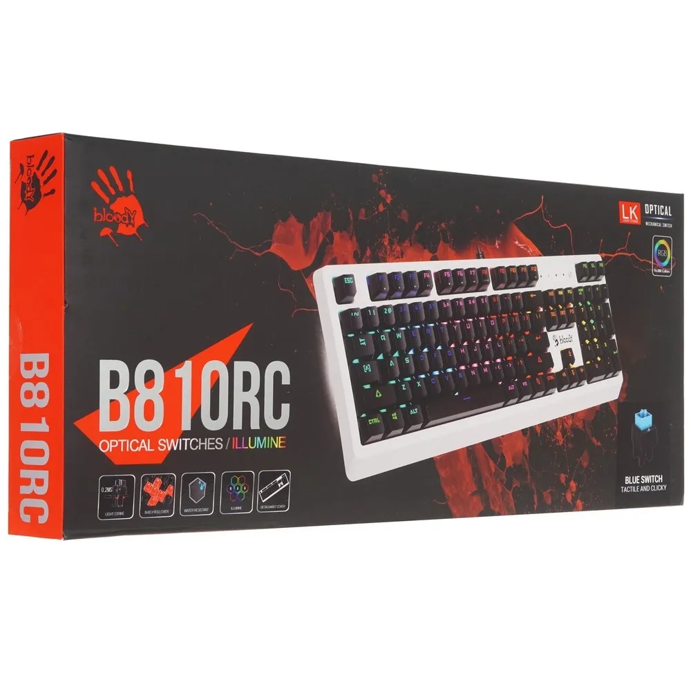 Клавиатура A4Tech Bloody B810RC белый/черный - описание товара, его характеристики, фото и цены представлены на карточке товара. Чтобы купить этот товар по цене 5495 руб., свяжитесь с нами по телефону 8(800)505-43-75 в Тольятти, или оформите покупку через корзину.