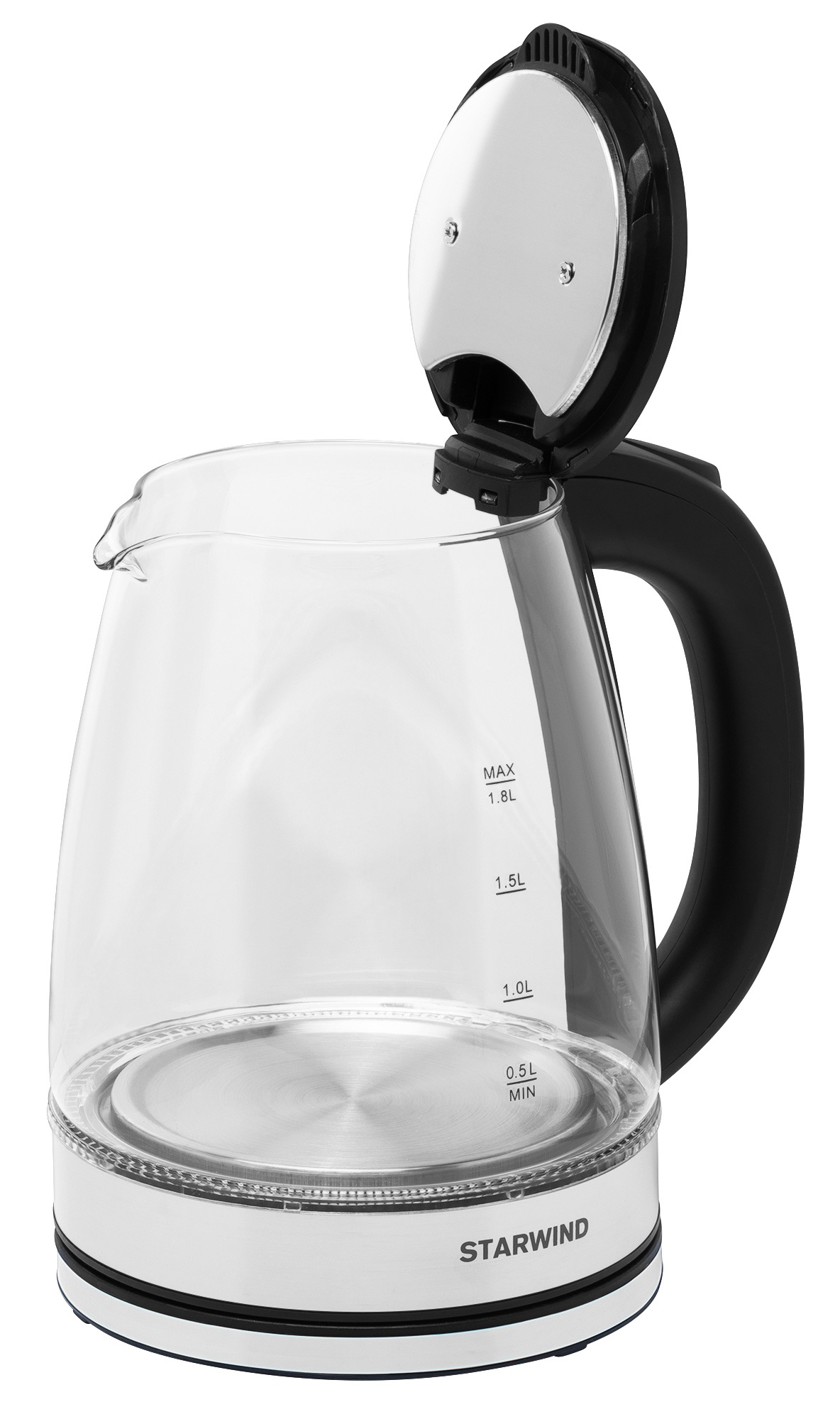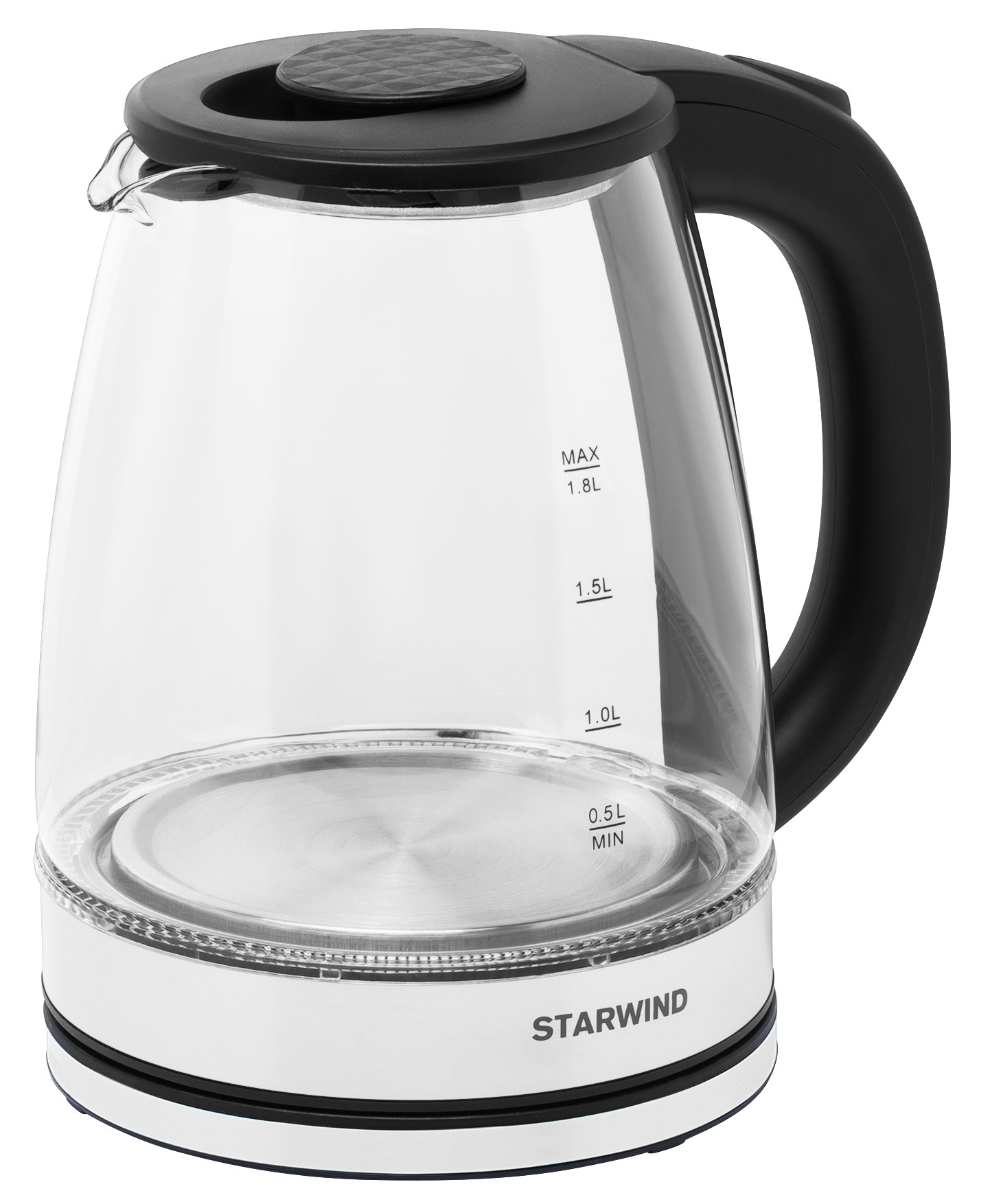 Чайник Starwind SKG2050 удобен в использовании – питьевая вода для создания вкусного кофе или чая разогревается за несколько минут. Электрический чайник обладает мощностью порядка 1800 Ватт, а объем емкости для воды составляет 1,8 литра. Выполнено устройство в черном цвете, дополнено вставками серебристого оттенка. Корпус изготавливается на основе стекла и прочного пластика, имеется LED-подсветка. Этот чайник будет выделяться на вашем кухонном пространстве, обеспечит ему изысканность.